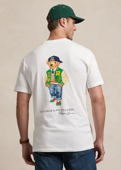 - Polo Bear, "Polo Bear by Ralph Lauren," and "Ralph Lauren" script printed at the center back.