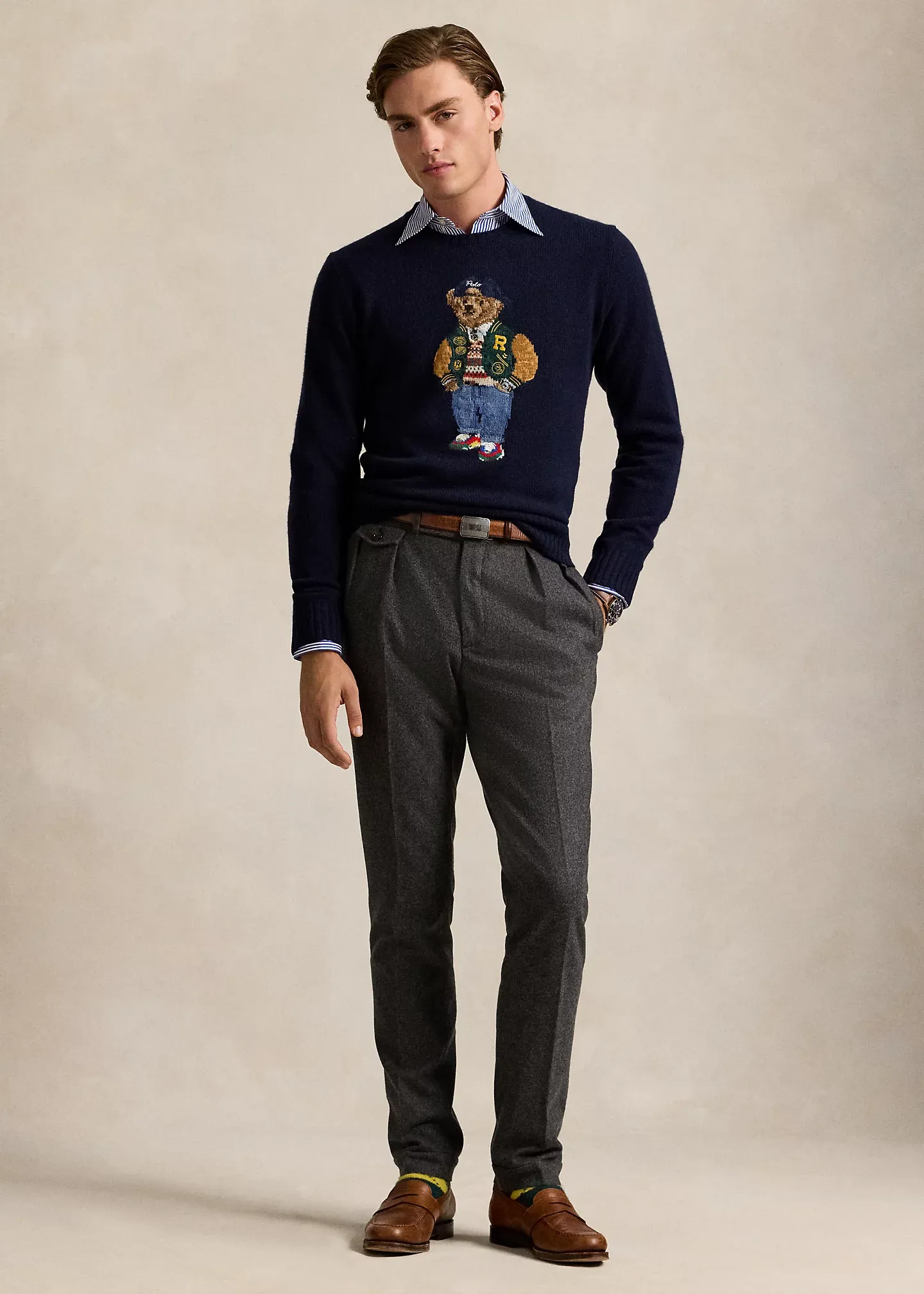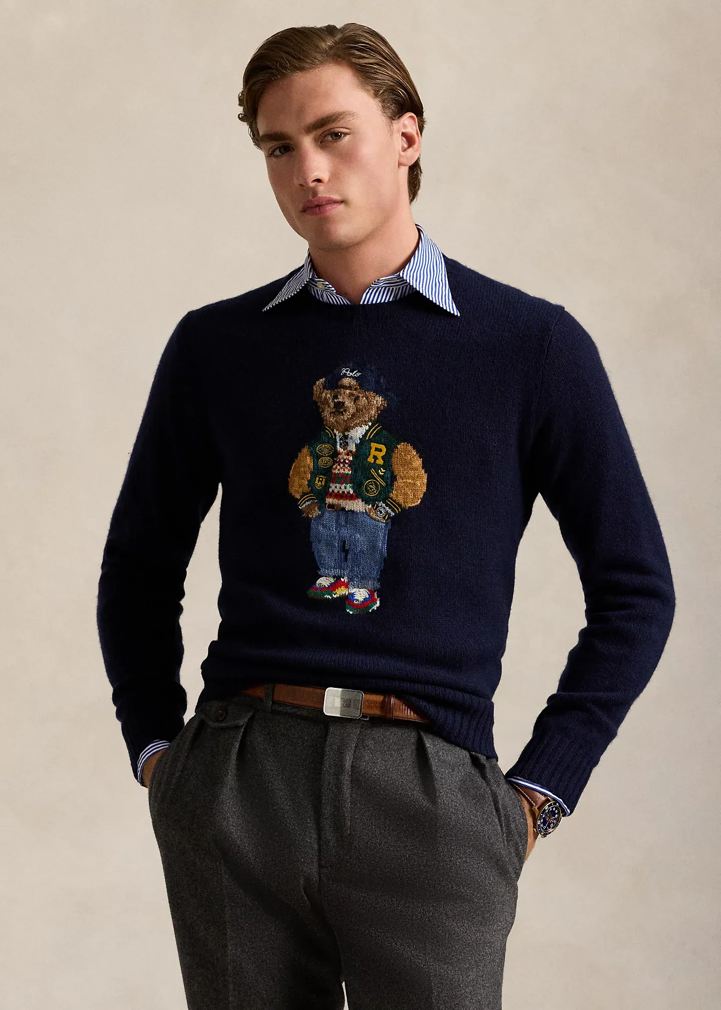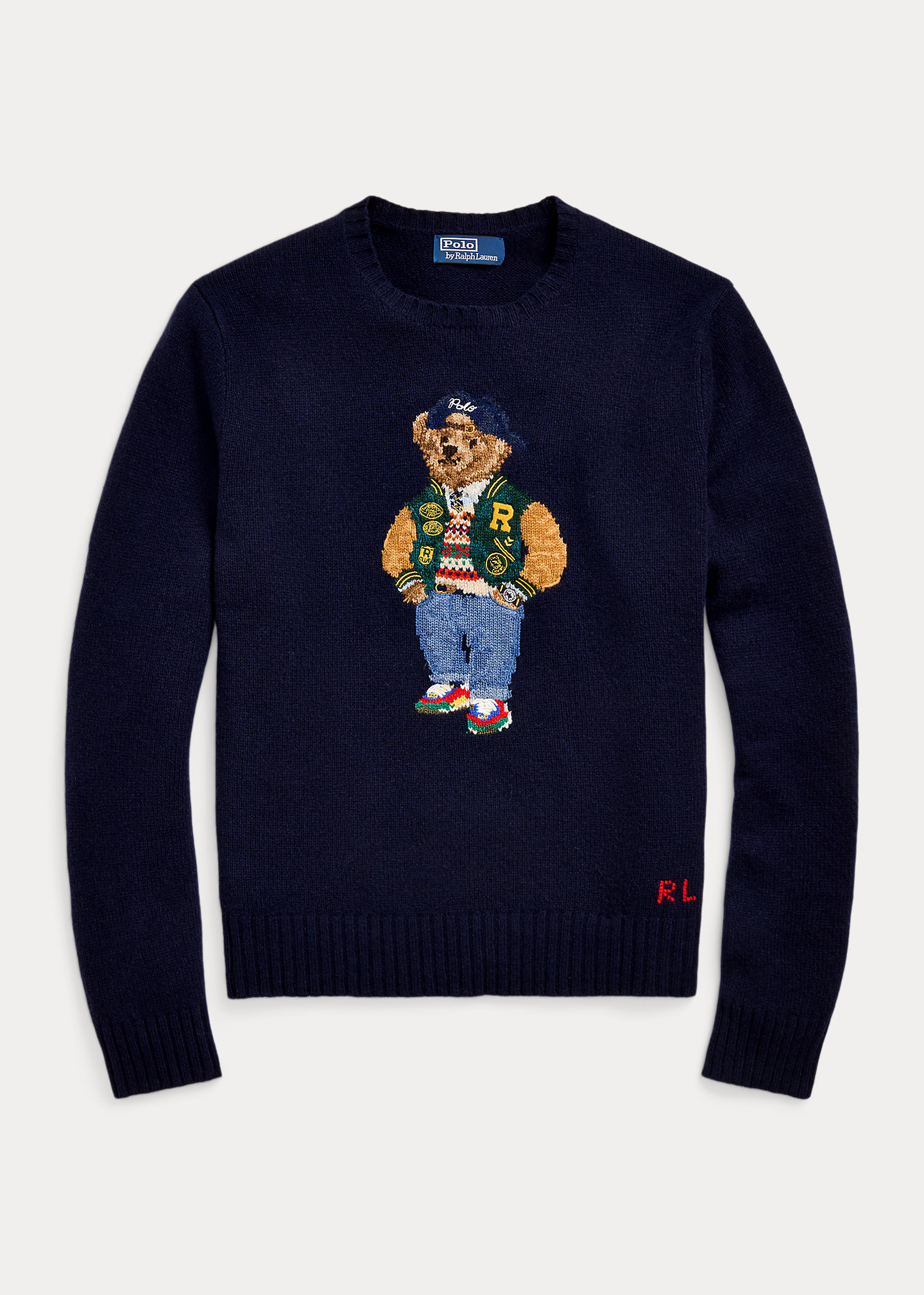 - Polo Bear intarsia-knit at the center front with embroidered details.