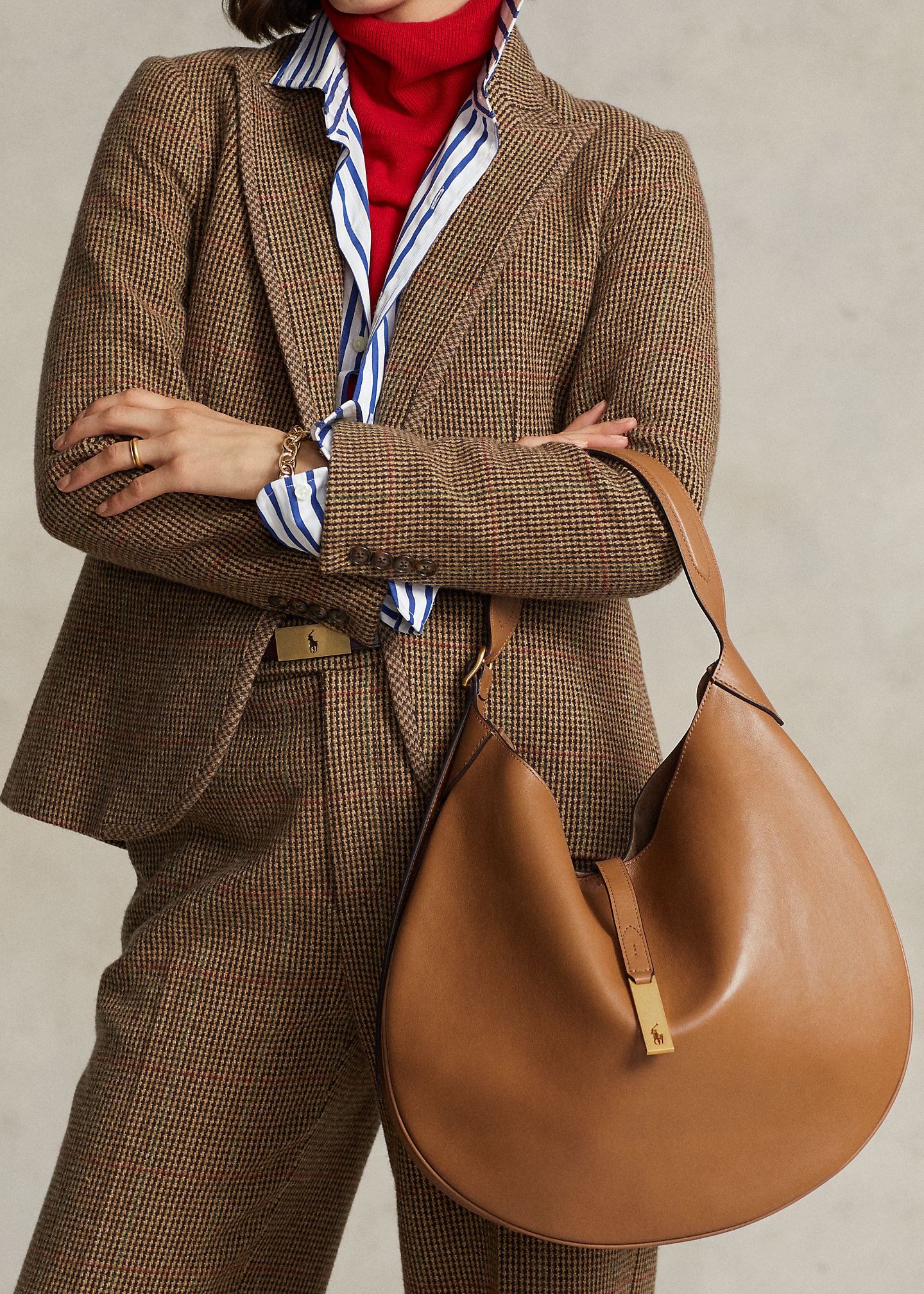 - Interior magnetic snapped closure. Leather keeper with a Hutton buckle and a weighted Polo ID plaque that can be placed at the front, at the back, or tucked in.