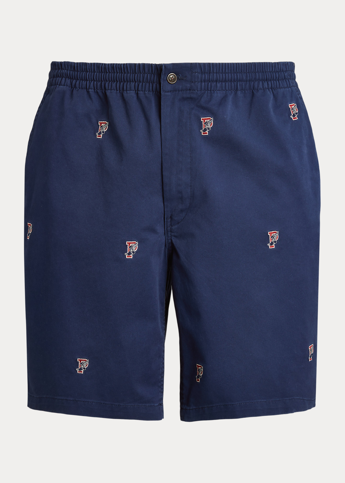 - Elastic waistband with an interior drawstring. Zip fly with a buttoned closure. Two front angled pockets. Two back buttoned pockets.