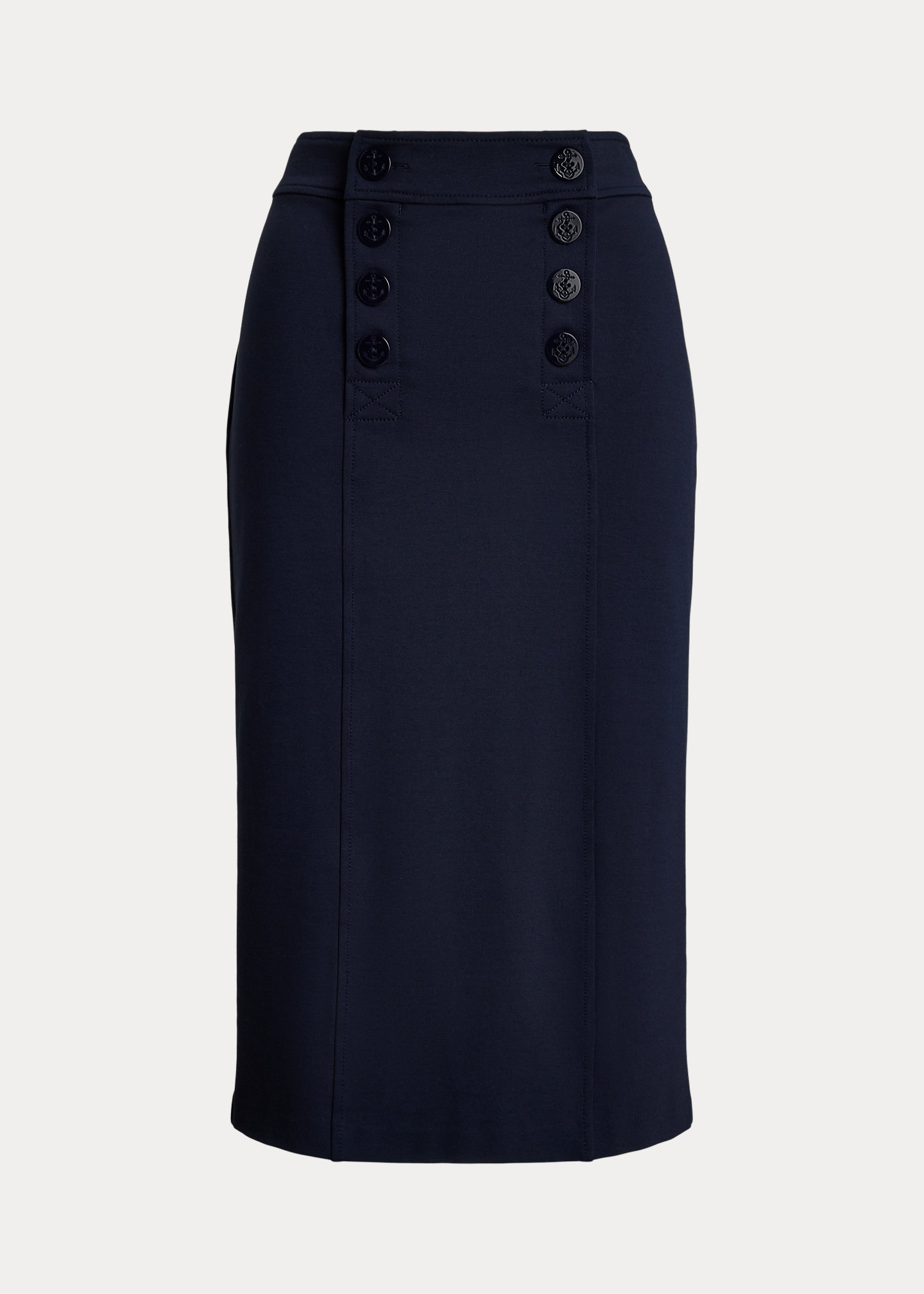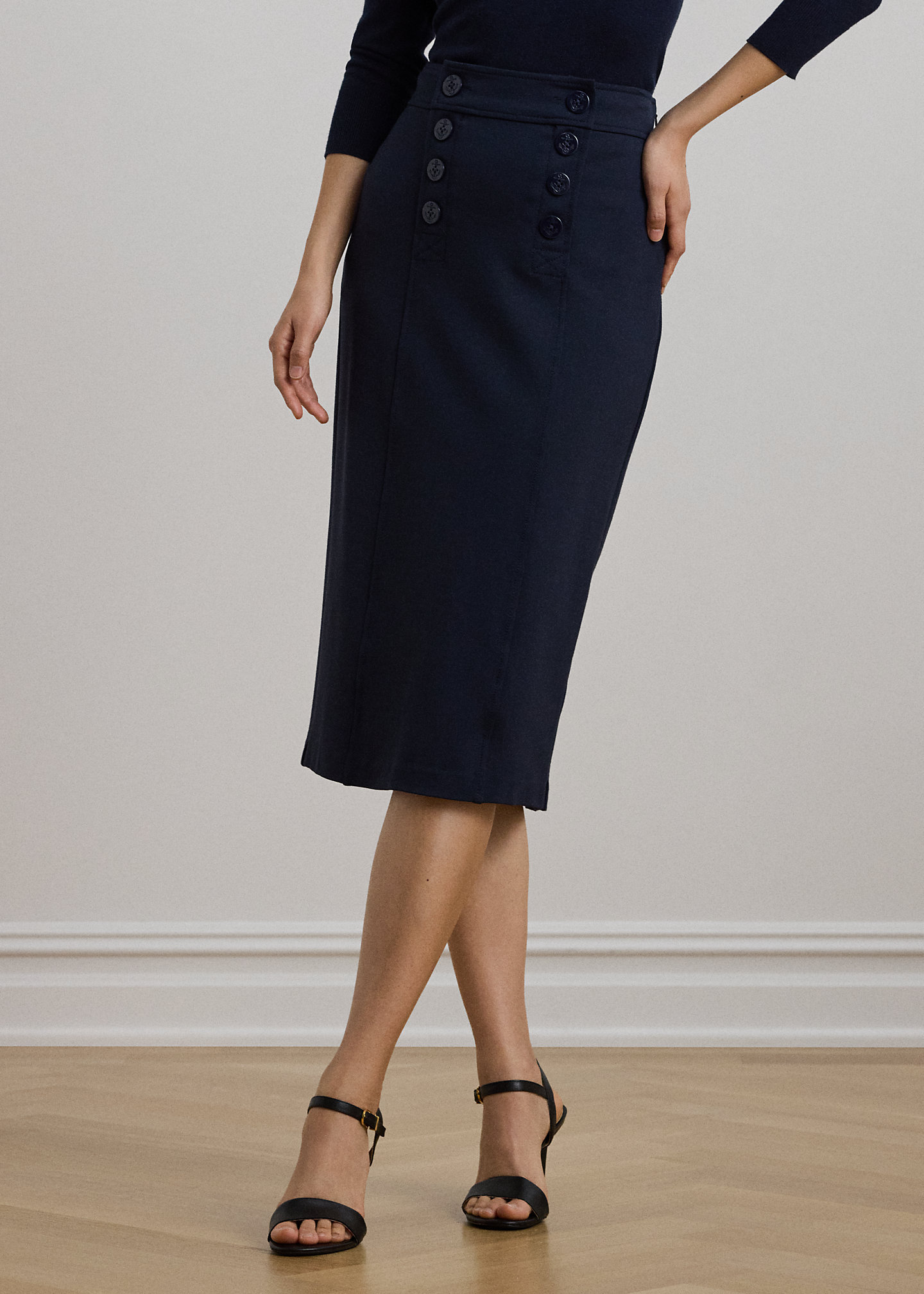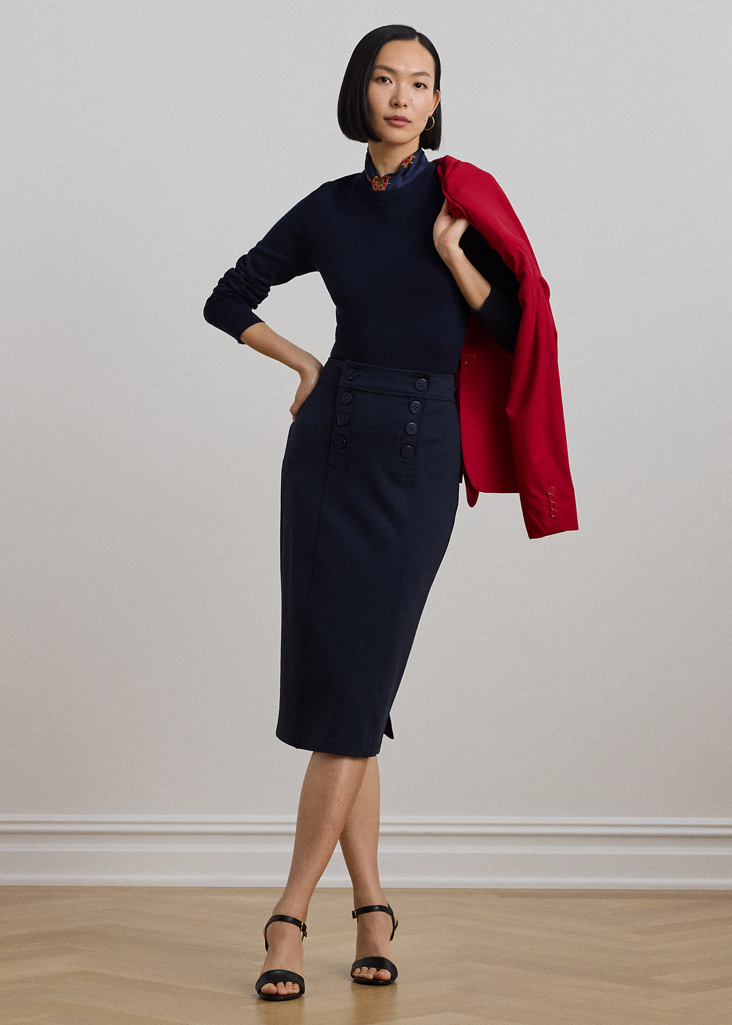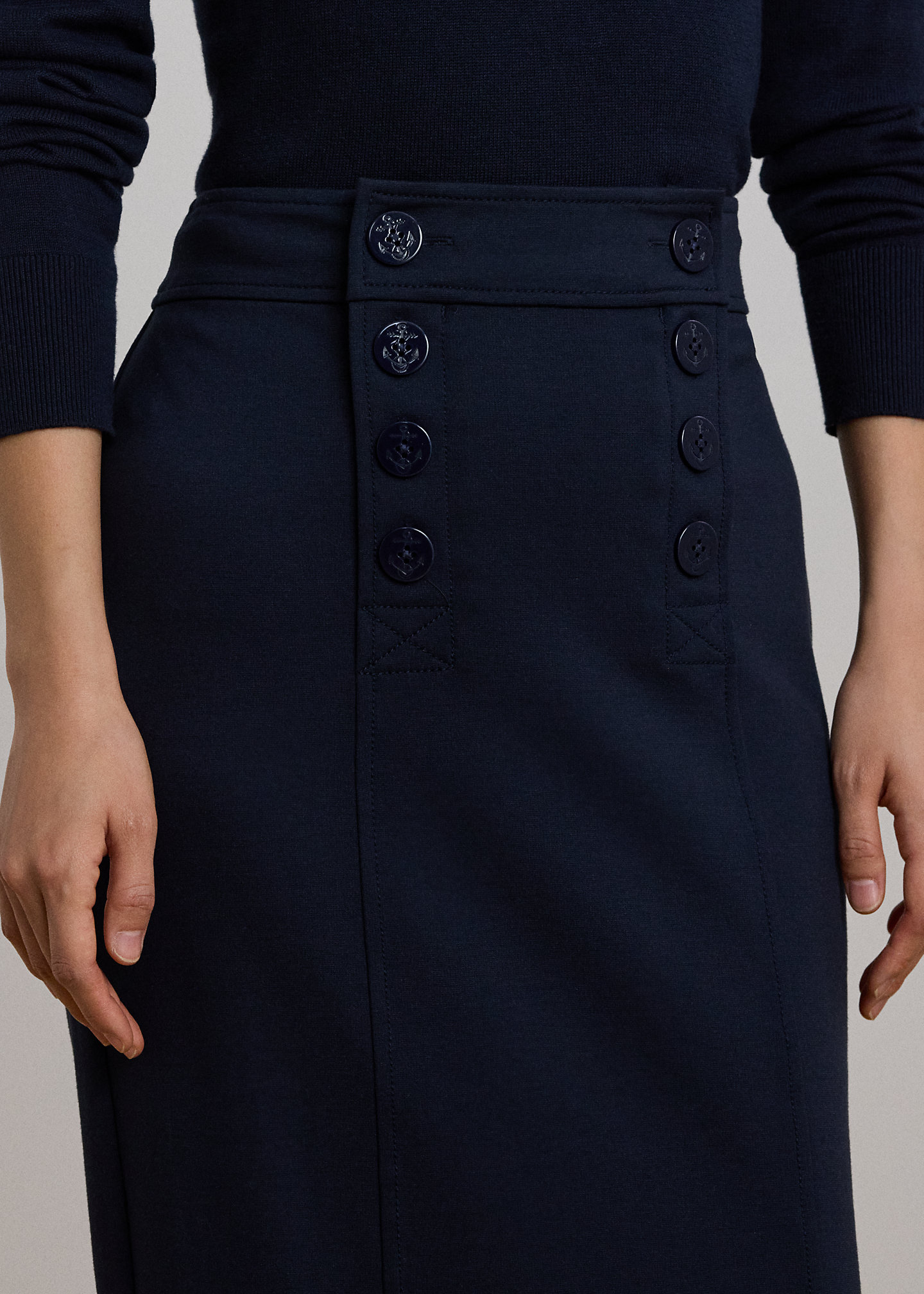 - Concealed left-side-seam zipper with a hook-and-eye closure. Buttoned bib-front. Tonal anchor-engraved buttons.