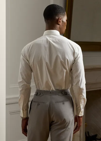 - Split pleated back yoke ensures smooth, contoured shoulders.