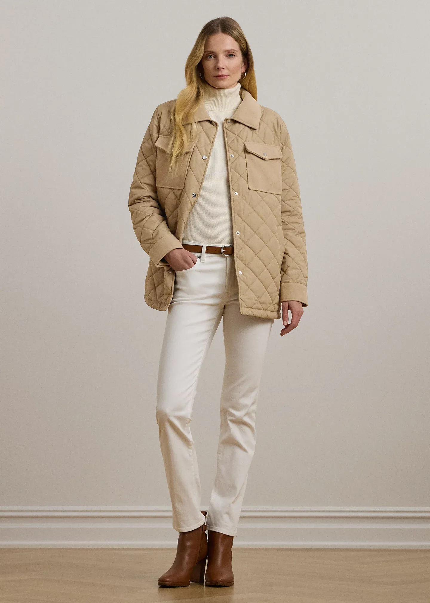 - Long sleeves with faux-wool snapped cuffs. Two chest faux-wool snapped-flap patch pockets. “LRL” metal logo at the left sleeve.
