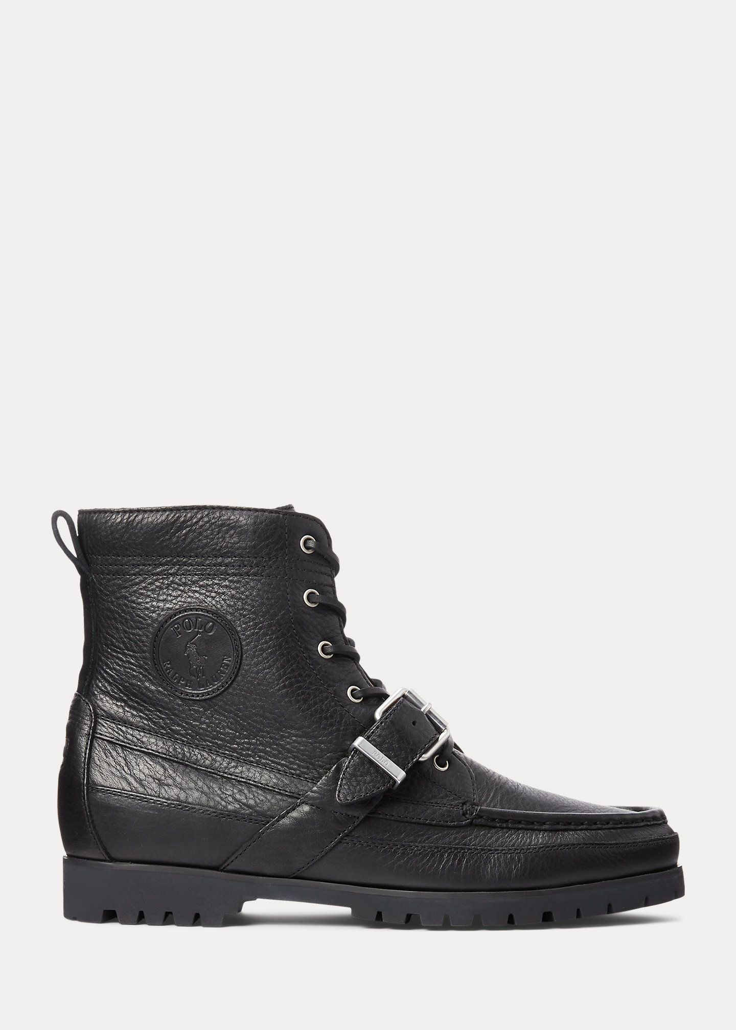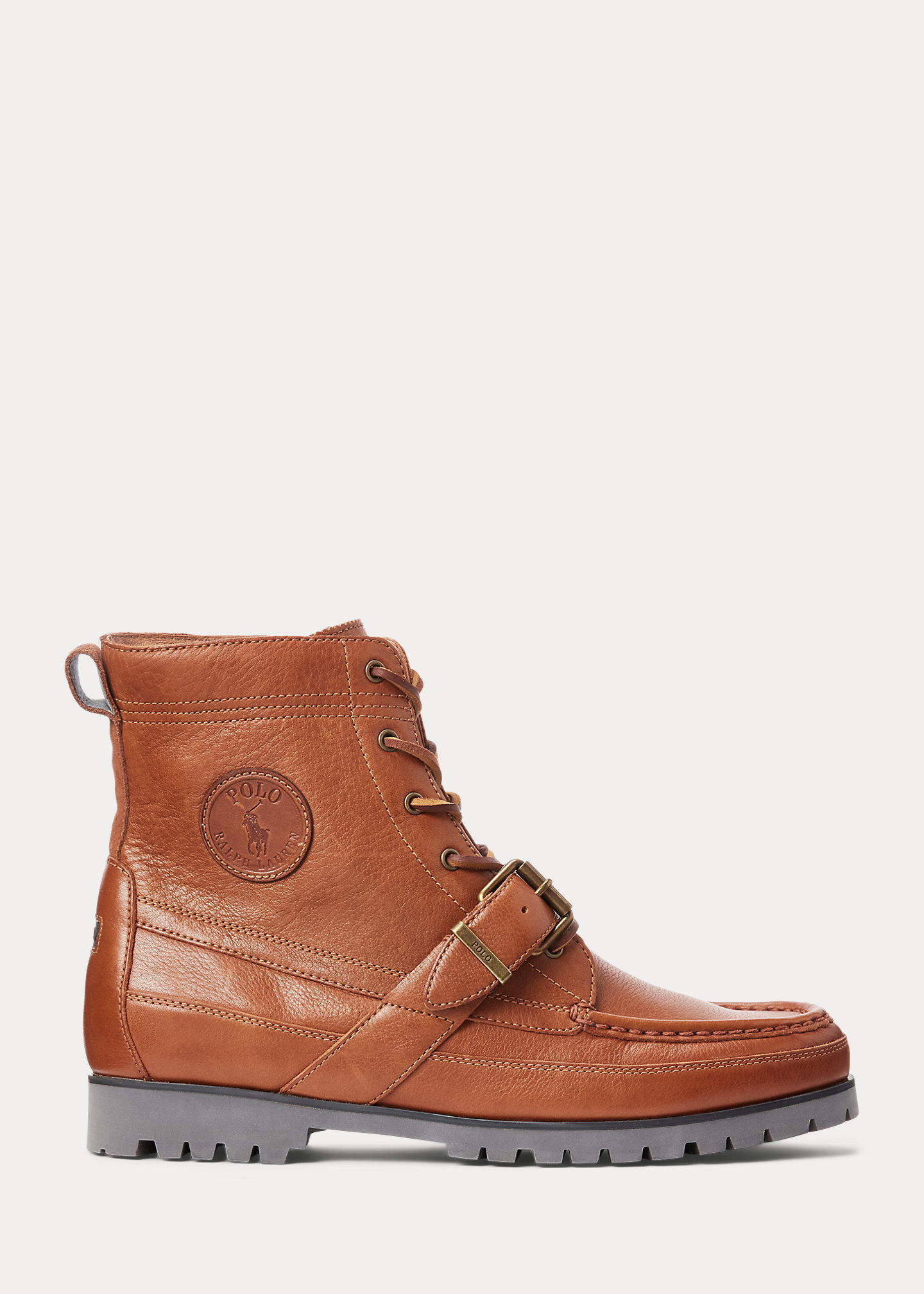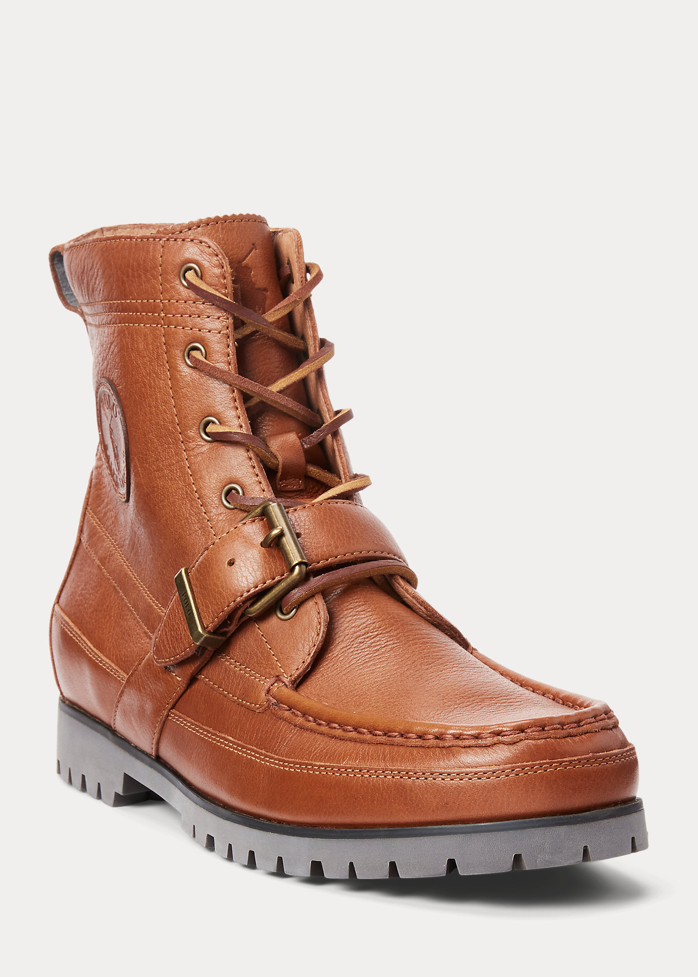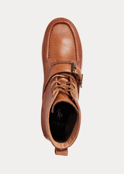- Signature Pony debossed at the tongue. "Polo Ralph Lauren" leather patch at the outer side. “Polo” rubber patch at the heel.