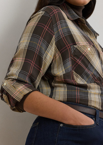Relaxed Fit Plaid Roll-Tab-Sleeve Shirt