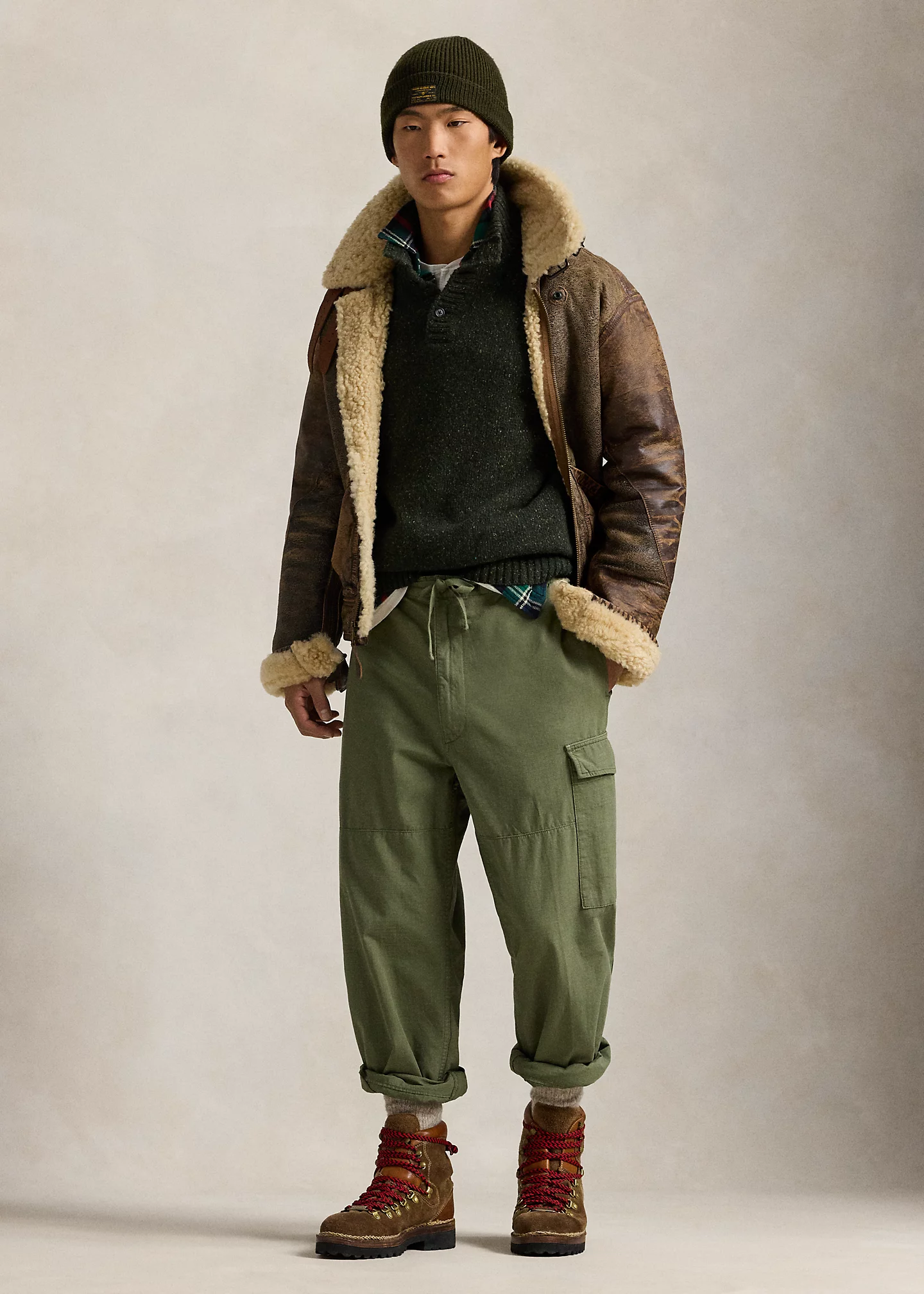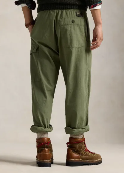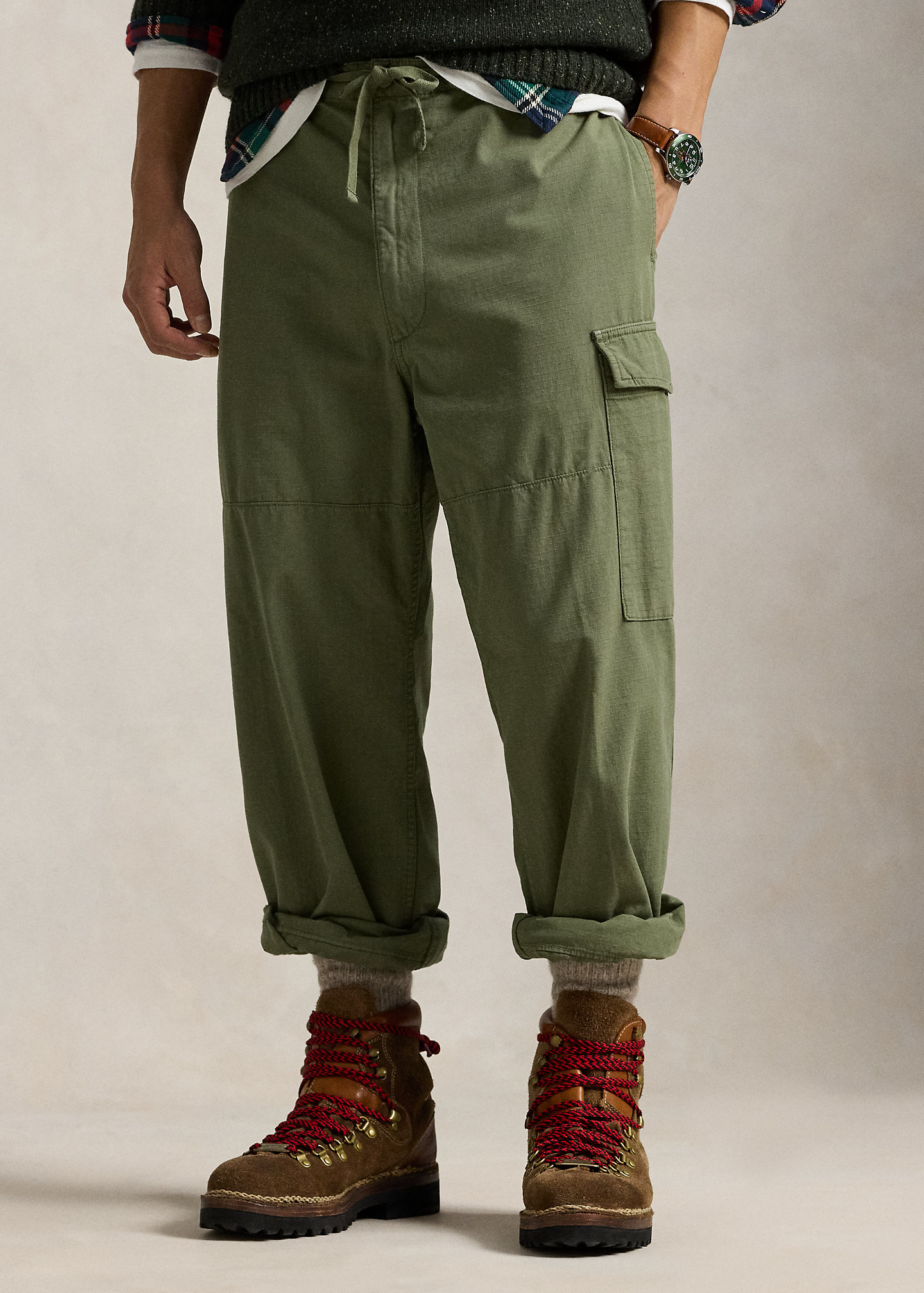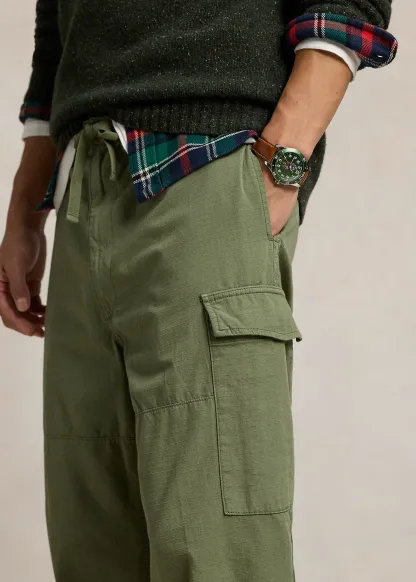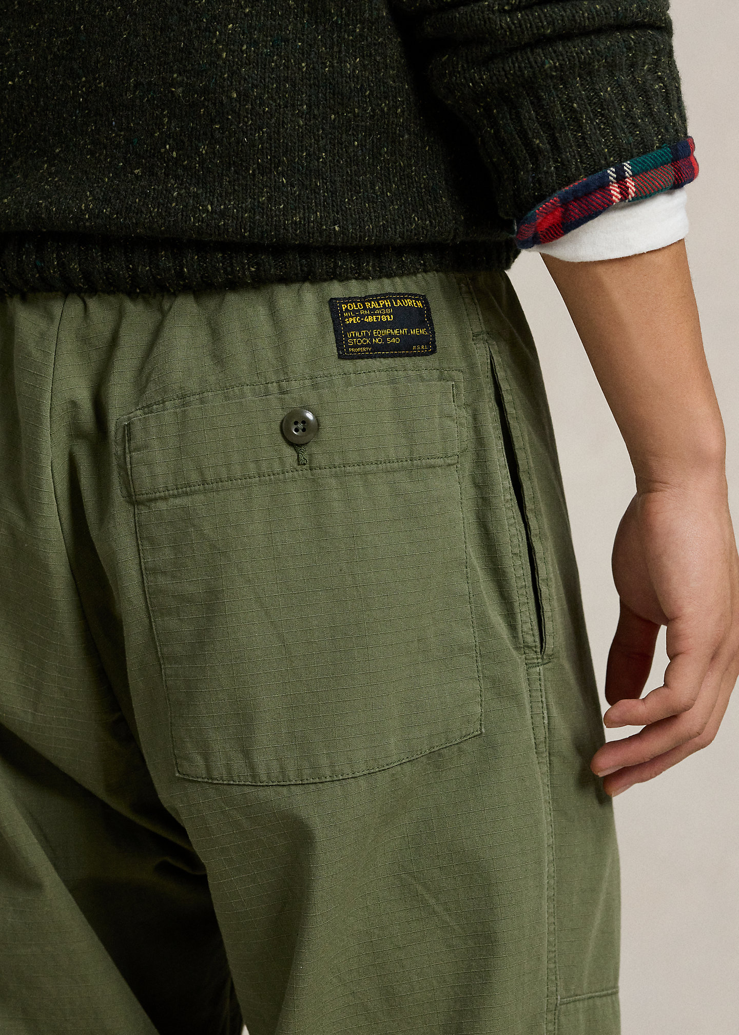 - Side on-seam pockets. Cargo pocket at the left thigh with a concealed button closure. Concealed phone pocket inside the cargo pocket. Back right buttoned pocket. “Polo Ralph Lauren Utility Equipment” label above the back pocket.