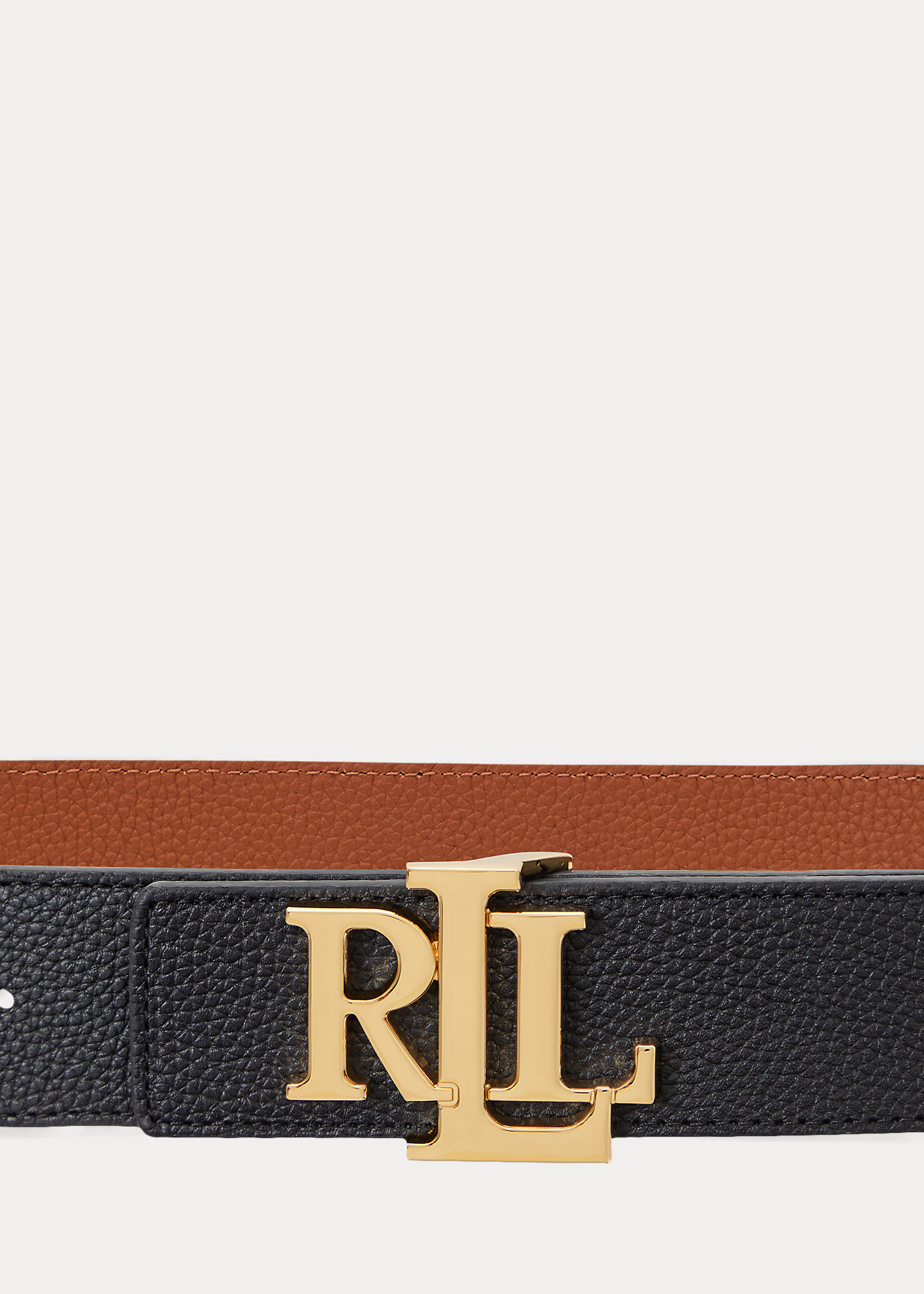 - Single-prong "LRL" brass-finished buckle.