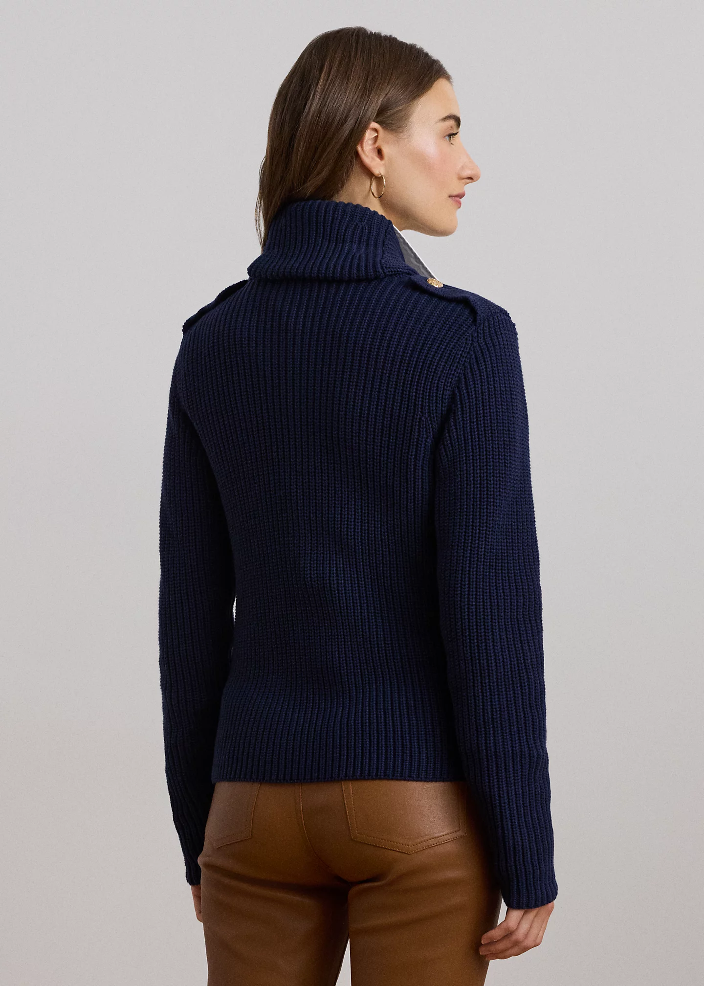 - Long sleeves. Buttoned shoulder epaulets. Anchor crest-embossed metal buttons. Two front waist vertical welt pockets. Unlined.