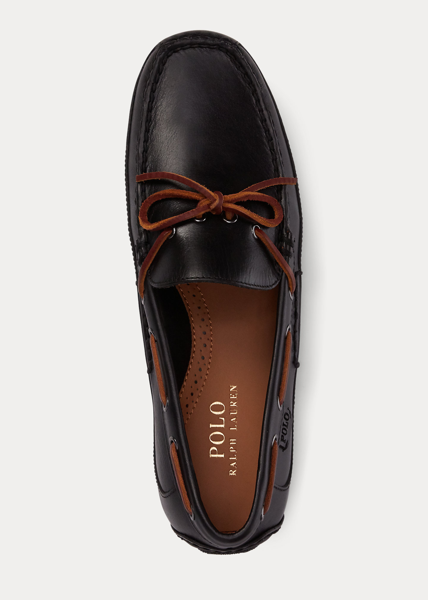 - Rawhide laces thread through metal grommets at the sides and tie at the vamp.