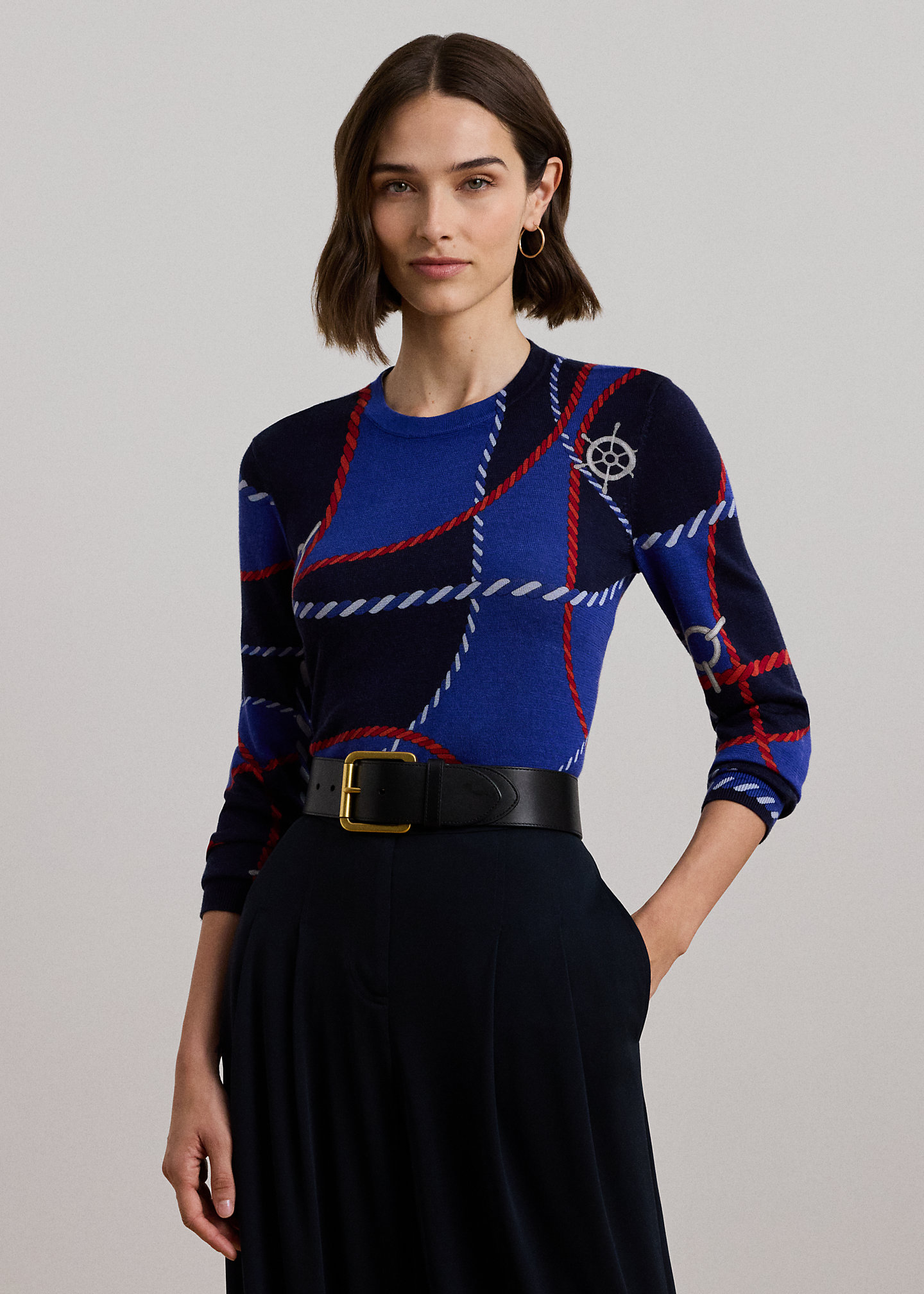 Rope-Print Cotton-Blend Sweater