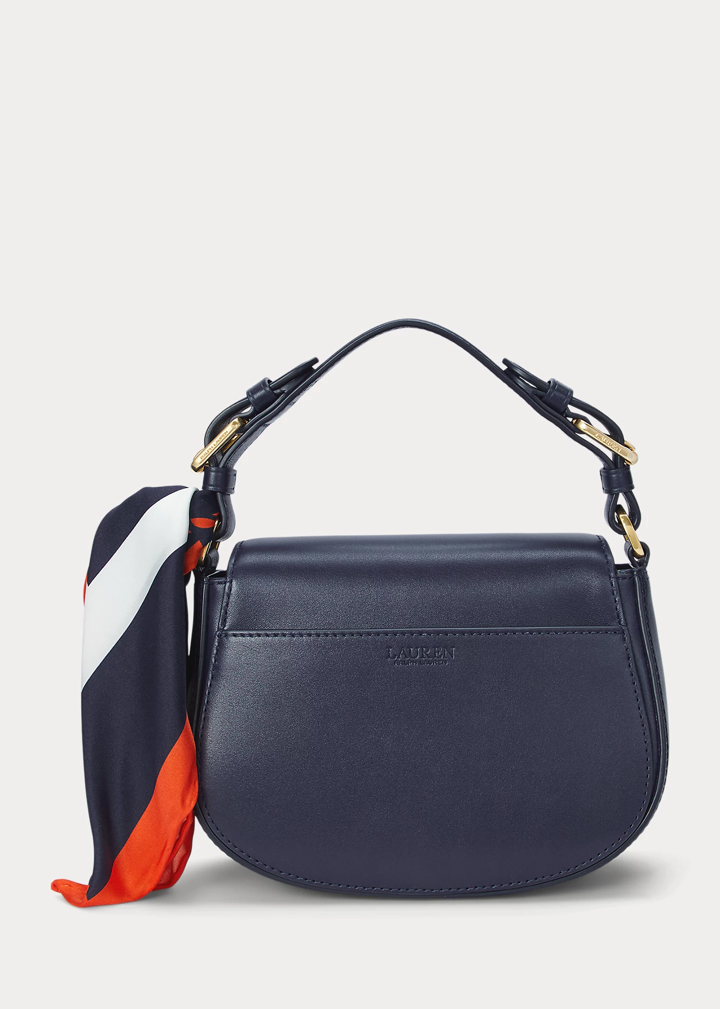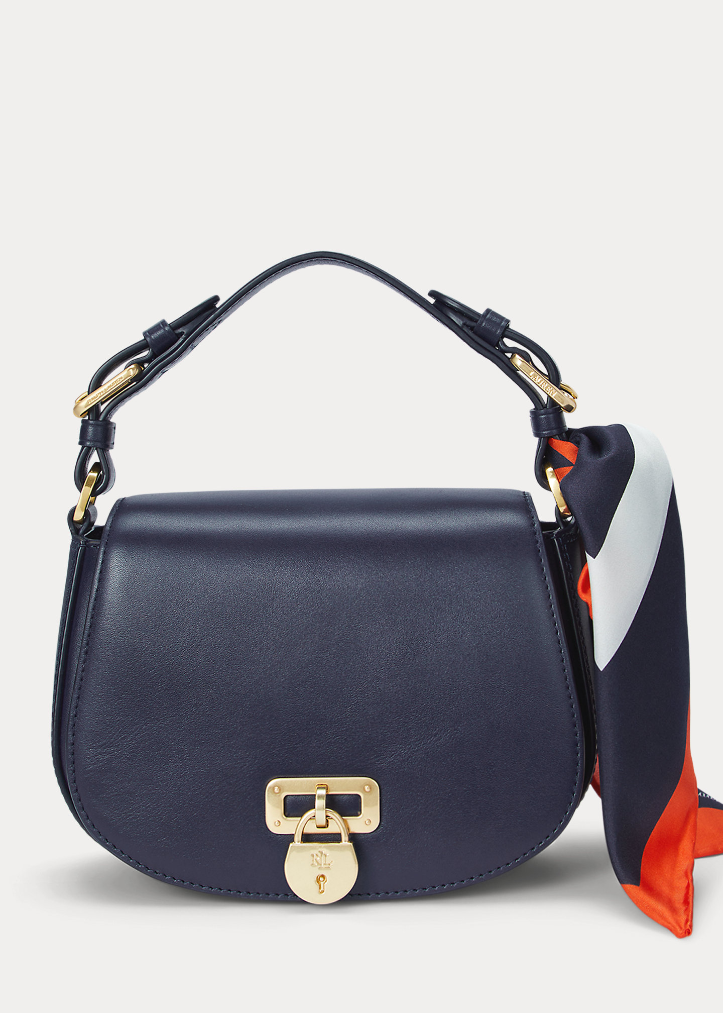 - Magnetic snapped closure. “LRL”-engraved brass-finished padlock charm at the flap. “Lauren”-engraved brass-finished buckles. “Lauren Ralph Lauren”–debossed logo at the back. “Lauren Ralph Lauren est. 1967”–engraved brass-finished plaque at the interior.