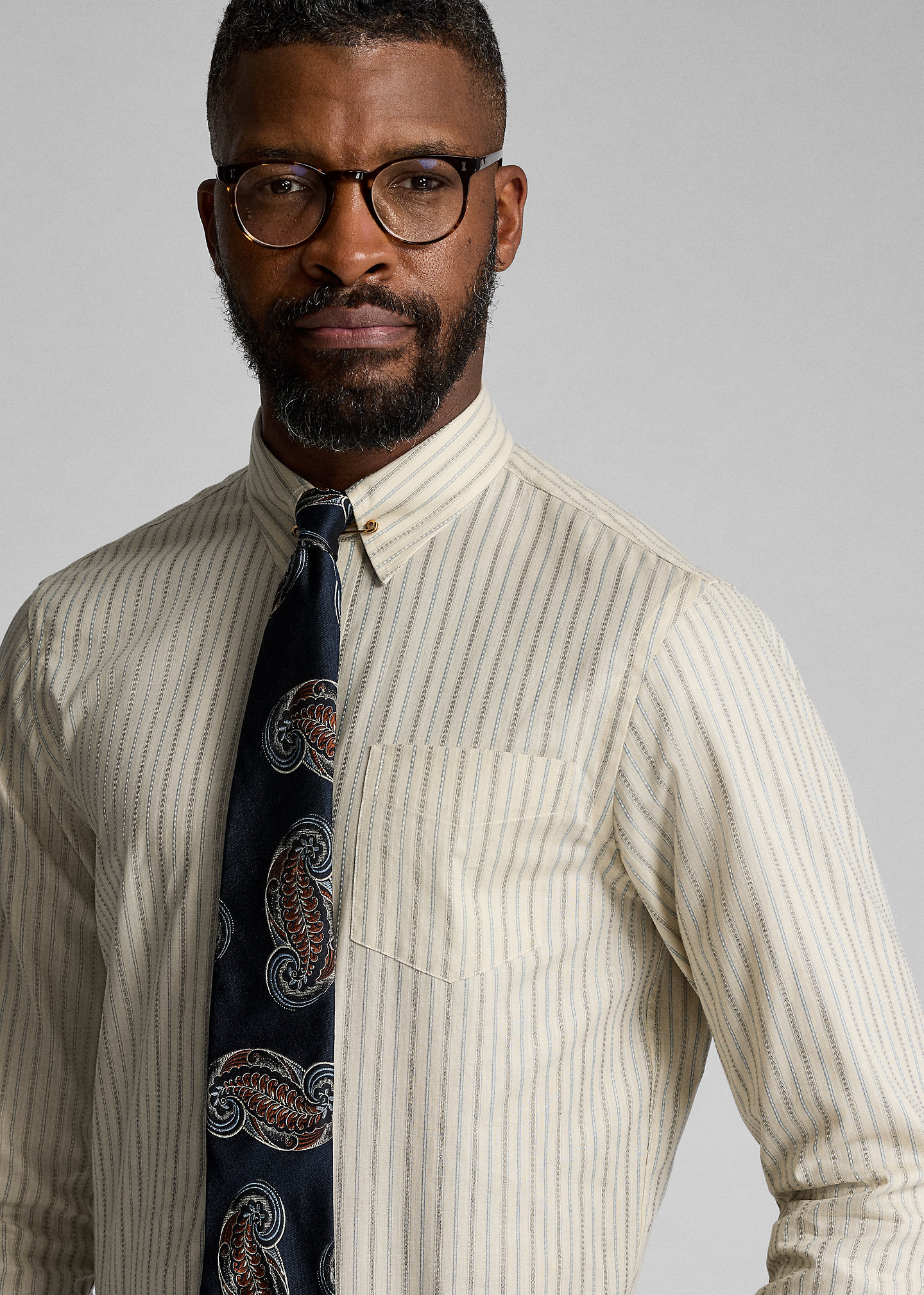 - Vintage-inspired straight collar. Buttoned placket. Genuine mother-of-pearl buttons.