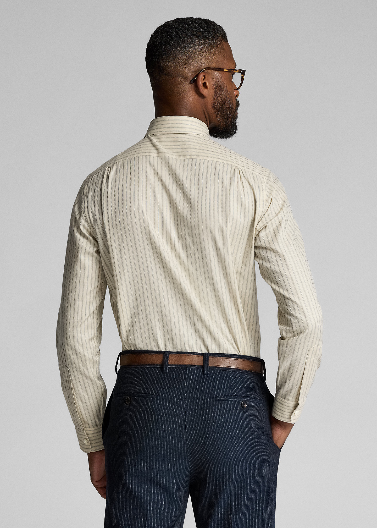 - Long sleeves with buttoned barrel cuffs.