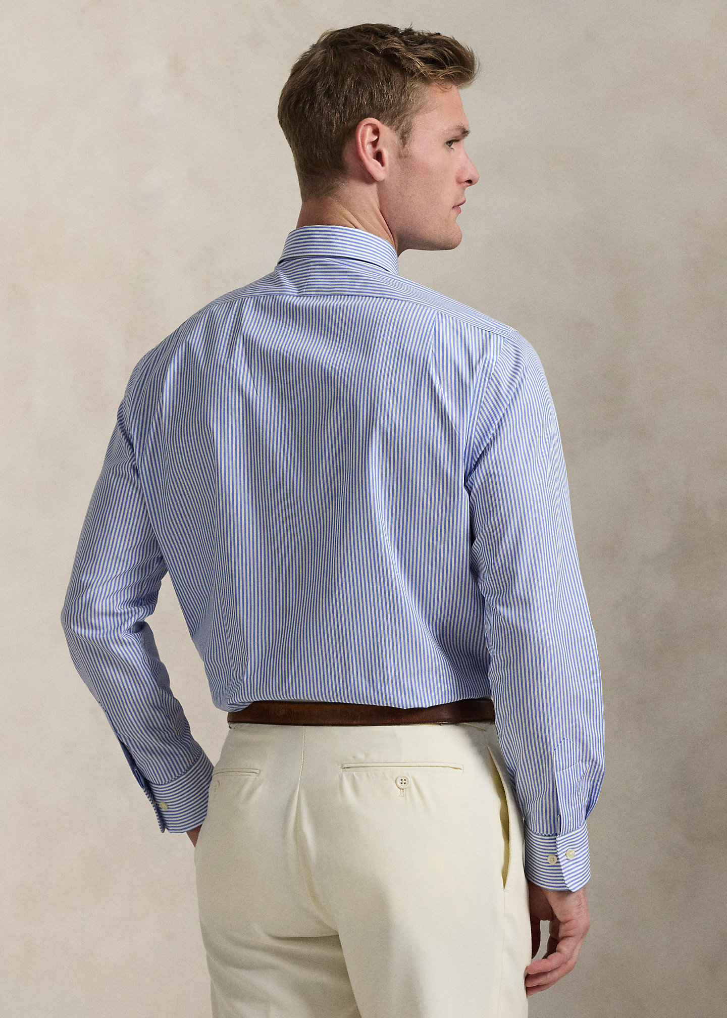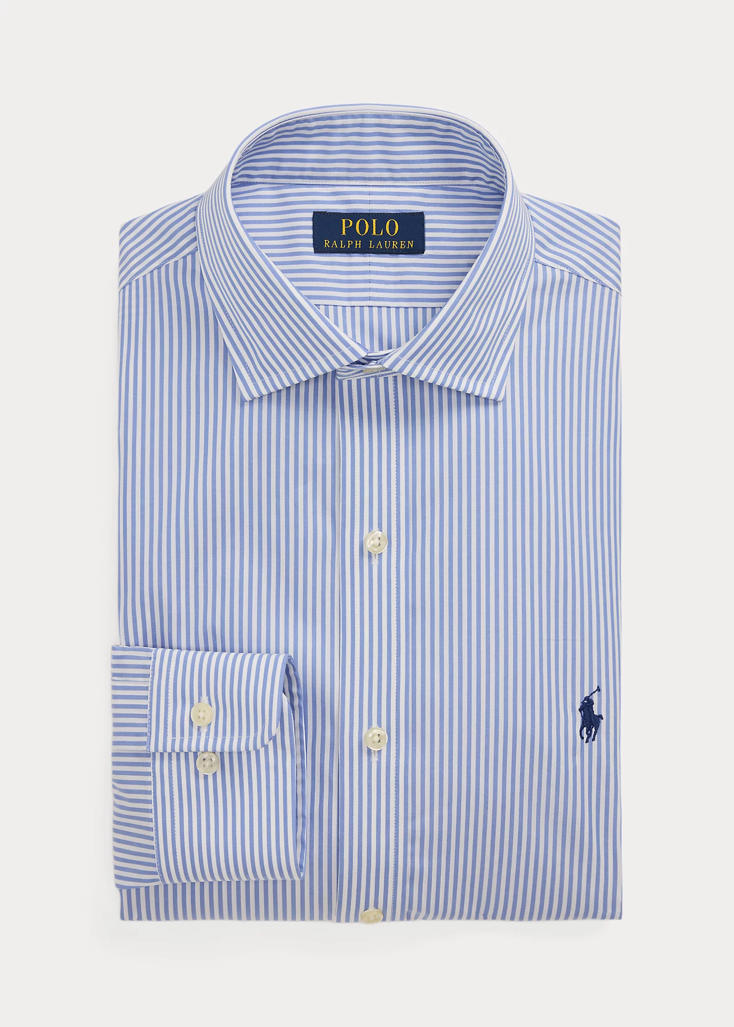- Medium-spread collar. Signature collar stays. Buttoned placket.