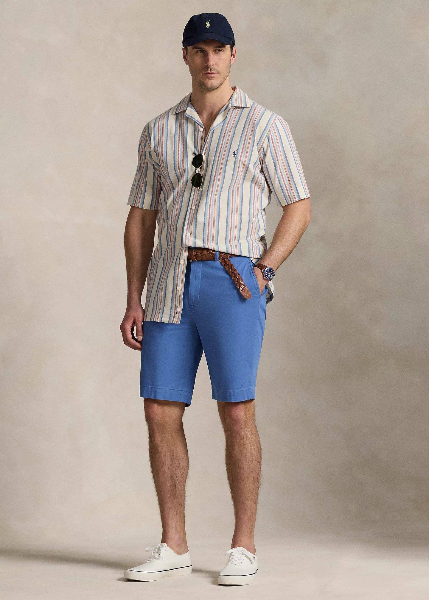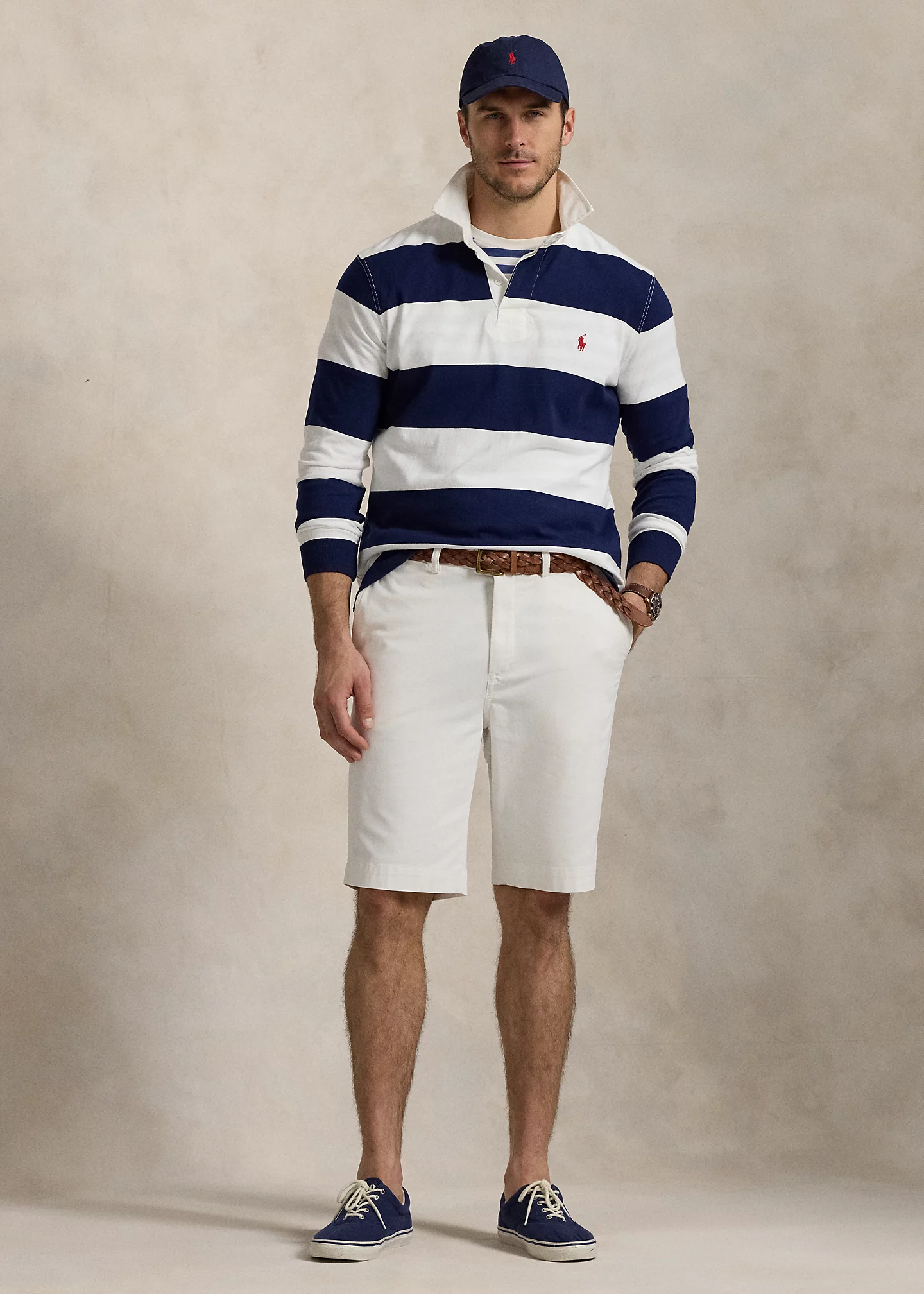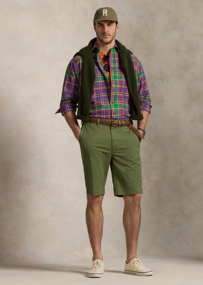 - Stretch Classic Fit: sits at the waist. Eased through the leg.