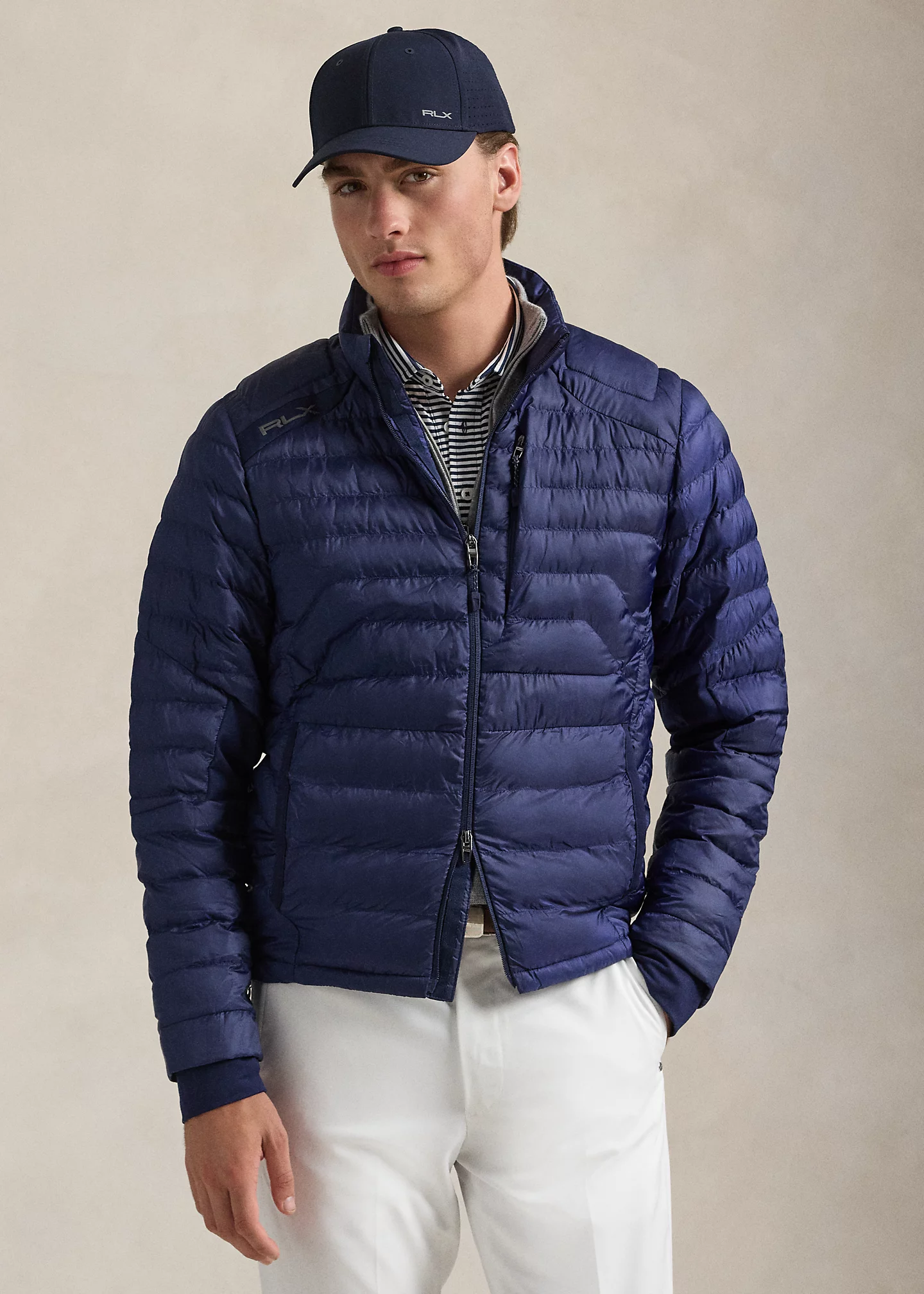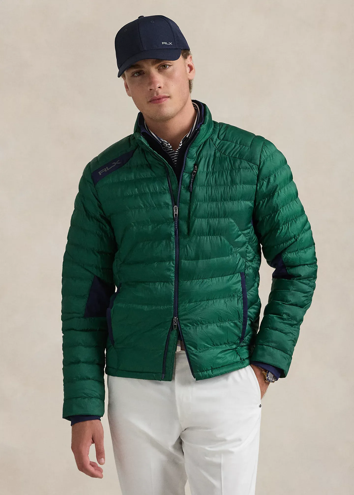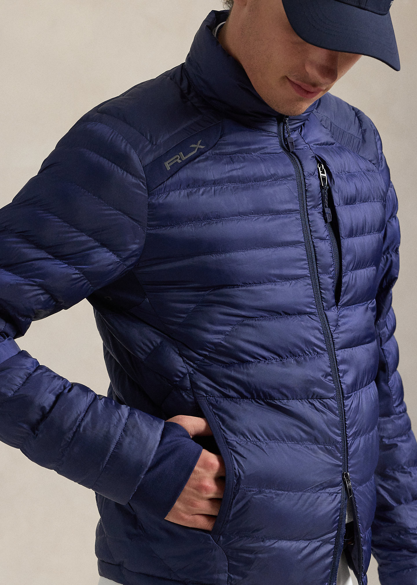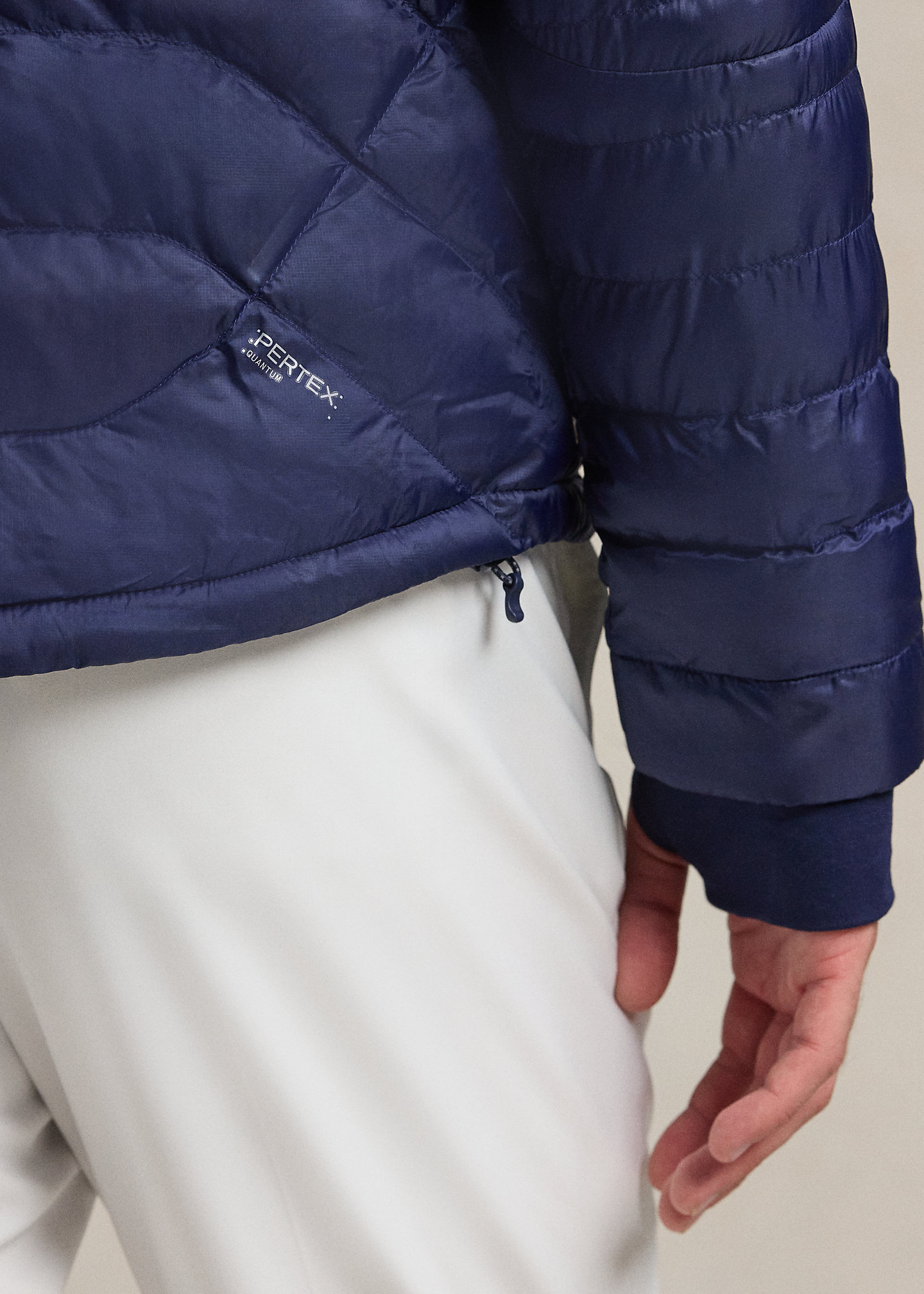 - "RLX" logo at the right shoulder. “PERTEX® Quantum” printed at the back right hem. "Packable" and "RLX" printed at the packable bag.
