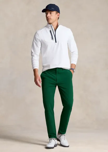 - Two front angled pockets. Concealed zipped pocket at the left side seam. Two back welt pockets.