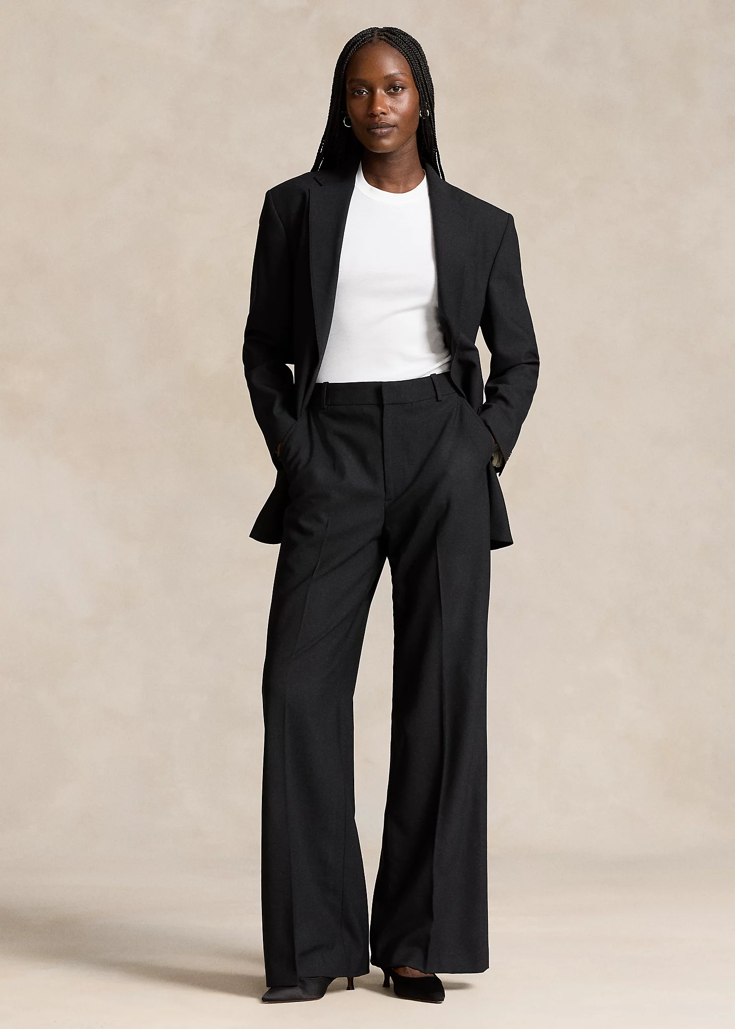 - High rise. Wide-leg silhouette. Intended to hit below the ankle.