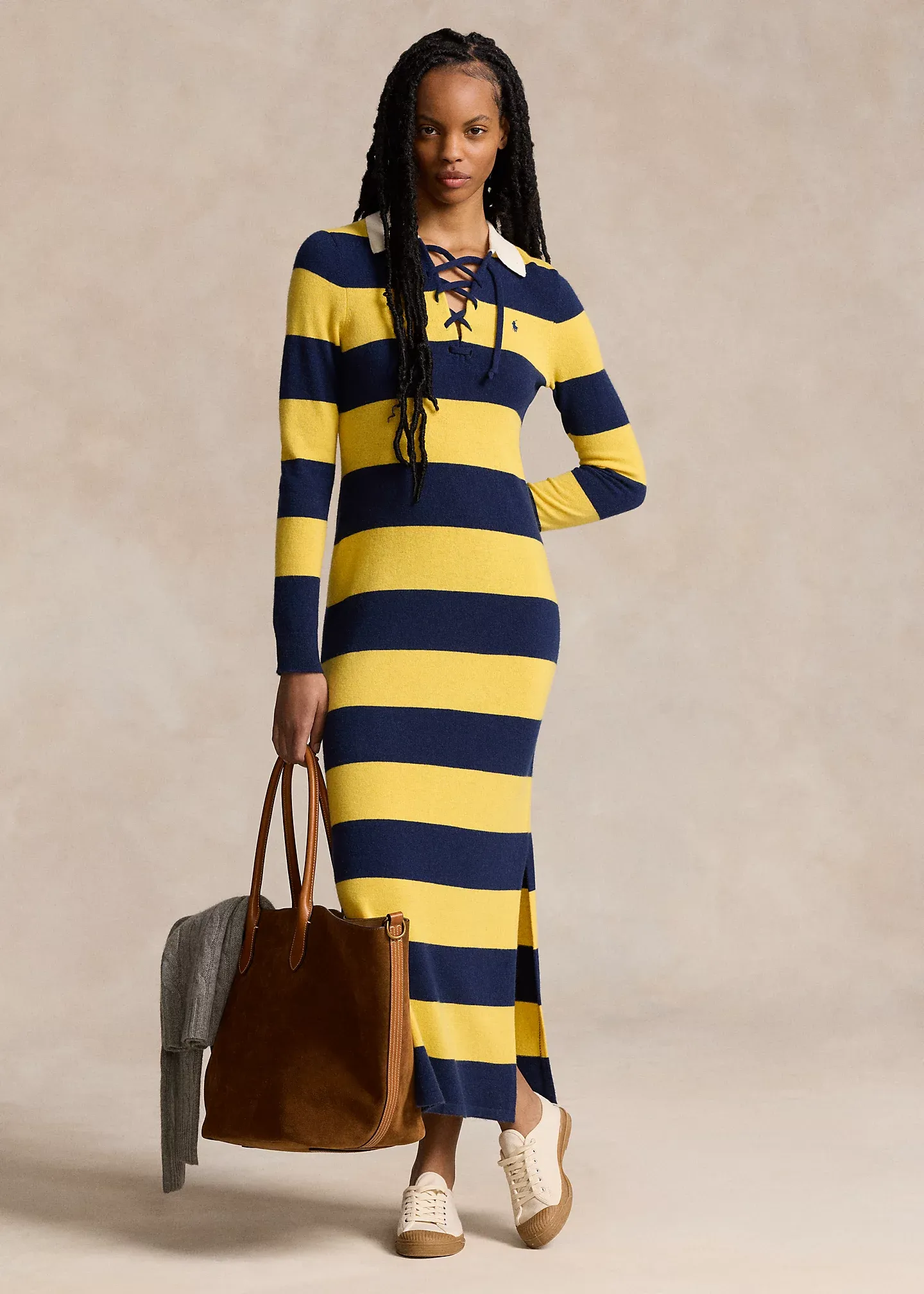 - Size medium has a 52.25" body length and a 24.75" sleeve length. Dress length is taken from the high point of the shoulder. Sleeve length is taken from the shoulder and changes 0.5" between sizes.