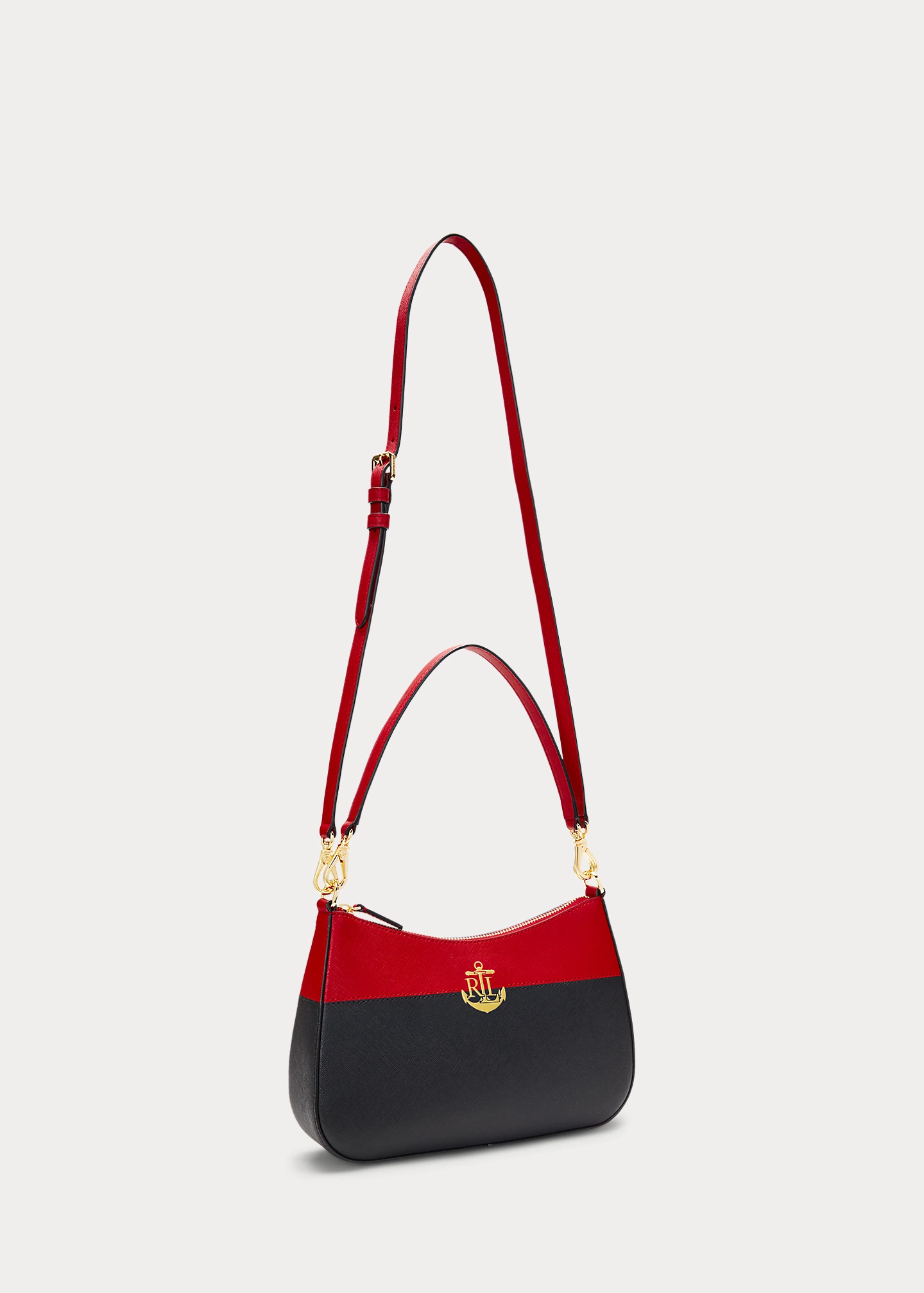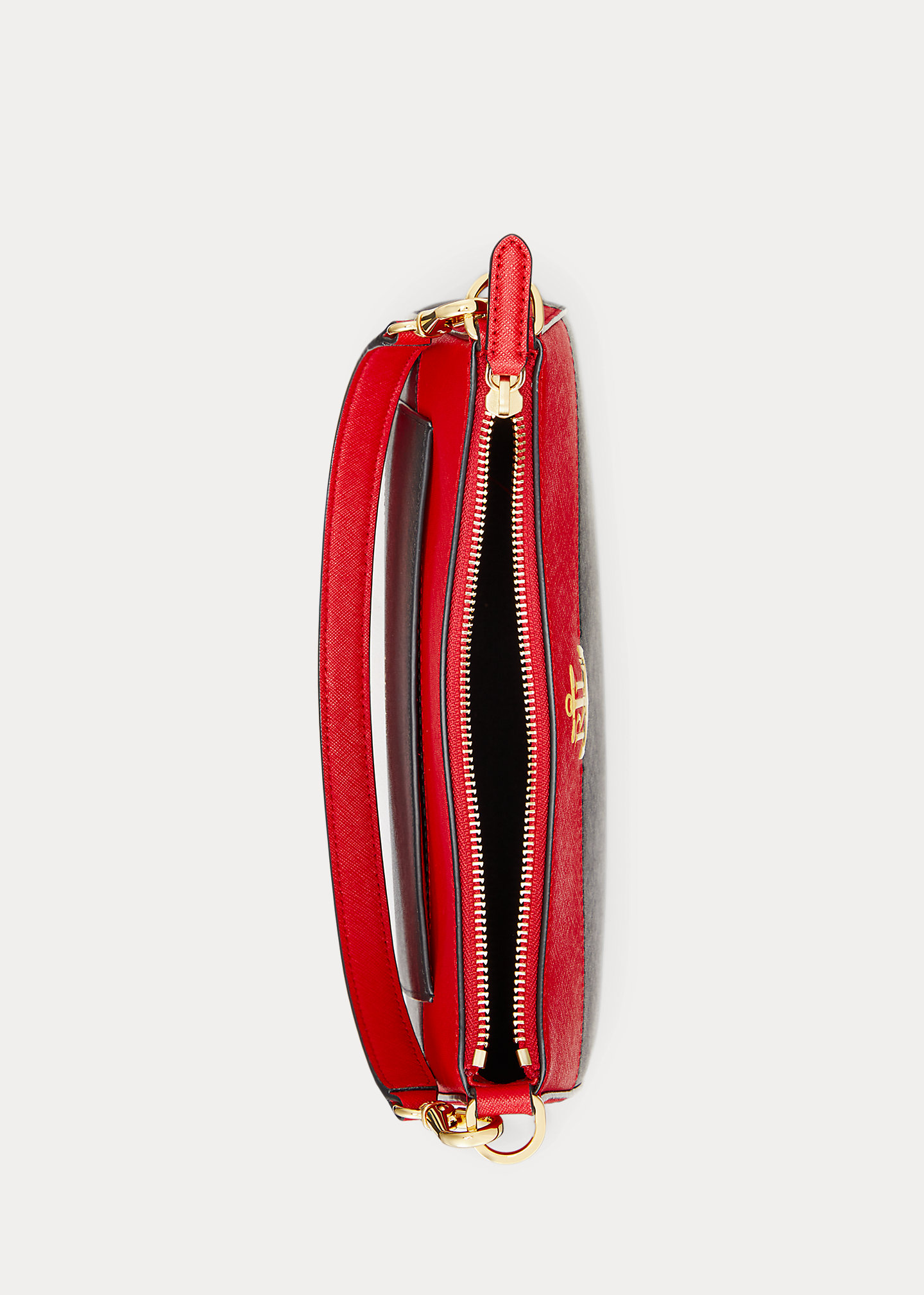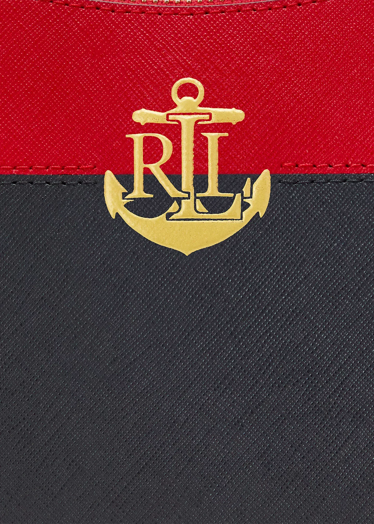 - Top zip closure. Polished “LRL” metal logo at the front. “Lauren Ralph Lauren” foil-printed logo at the back. “Lauren Ralph Lauren est. 1967”–engraved brass plaque at the interior.