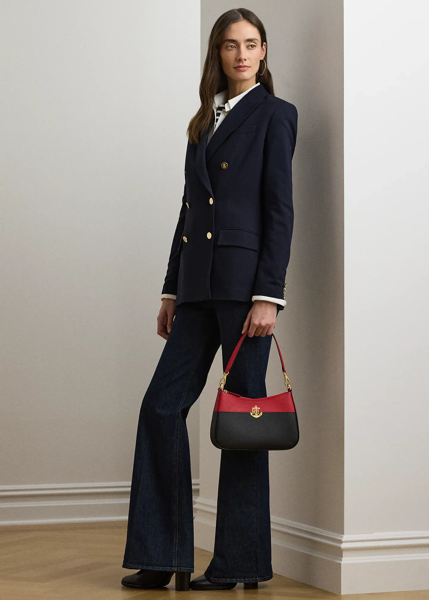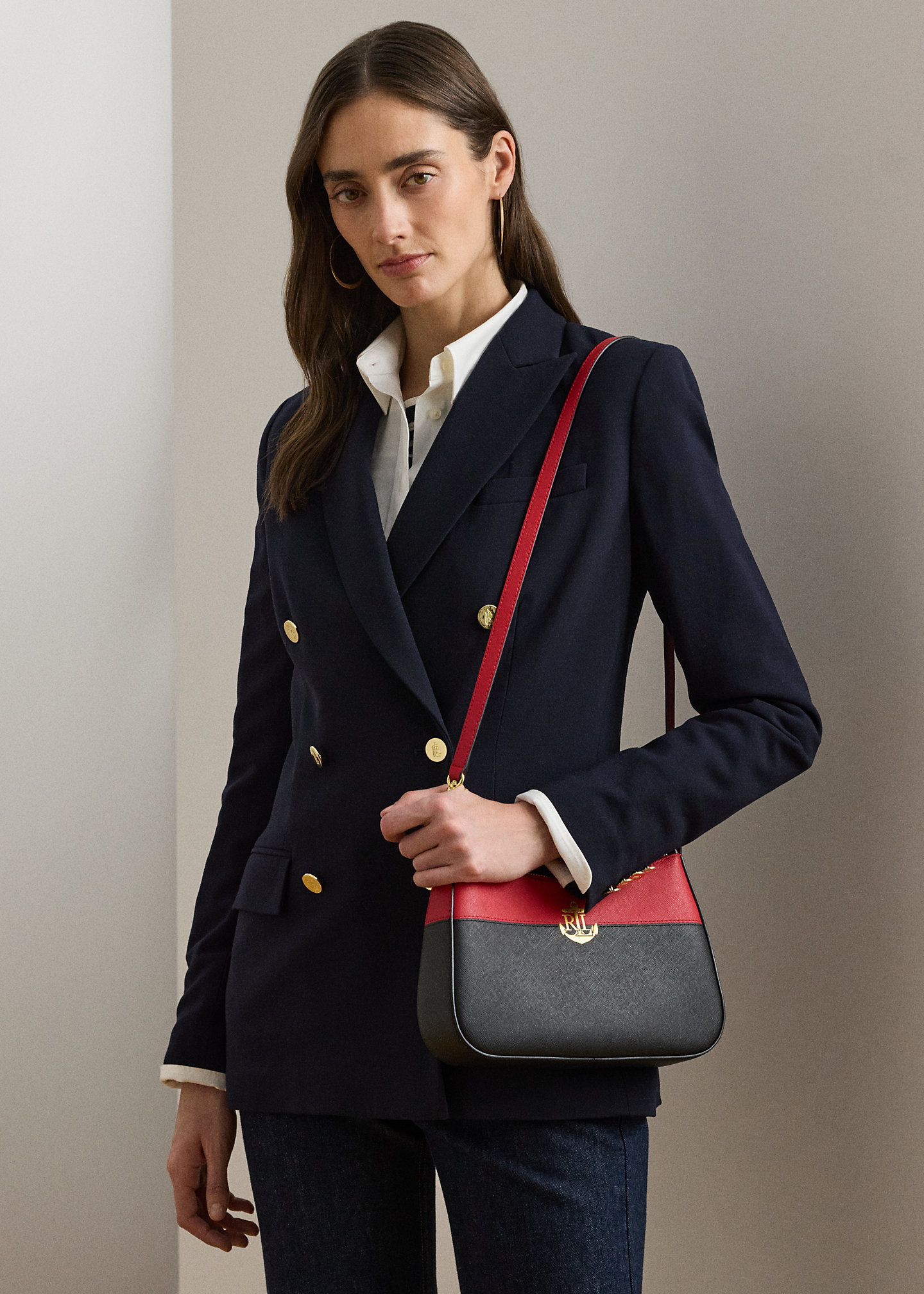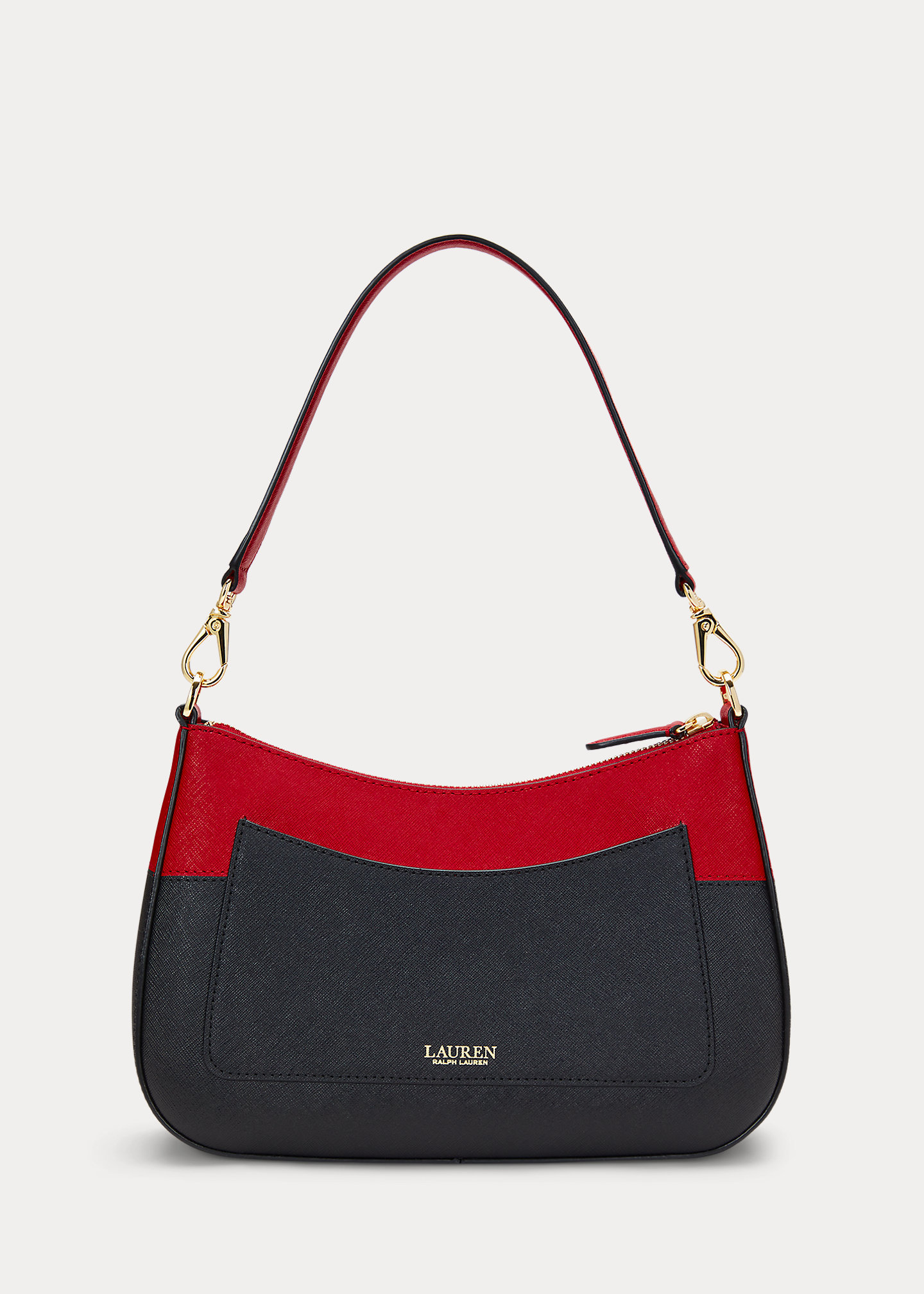 - Top zip closure. Polished “LRL” metal logo at the front. “Lauren Ralph Lauren” foil-printed logo at the back. “Lauren Ralph Lauren est. 1967”–engraved brass plaque at the interior.