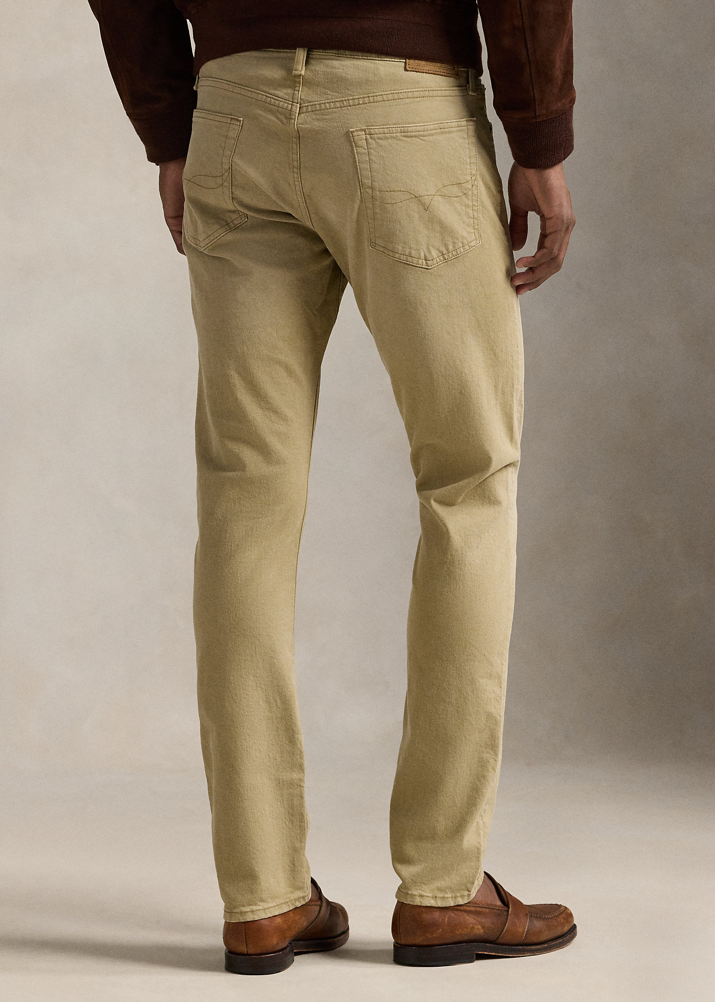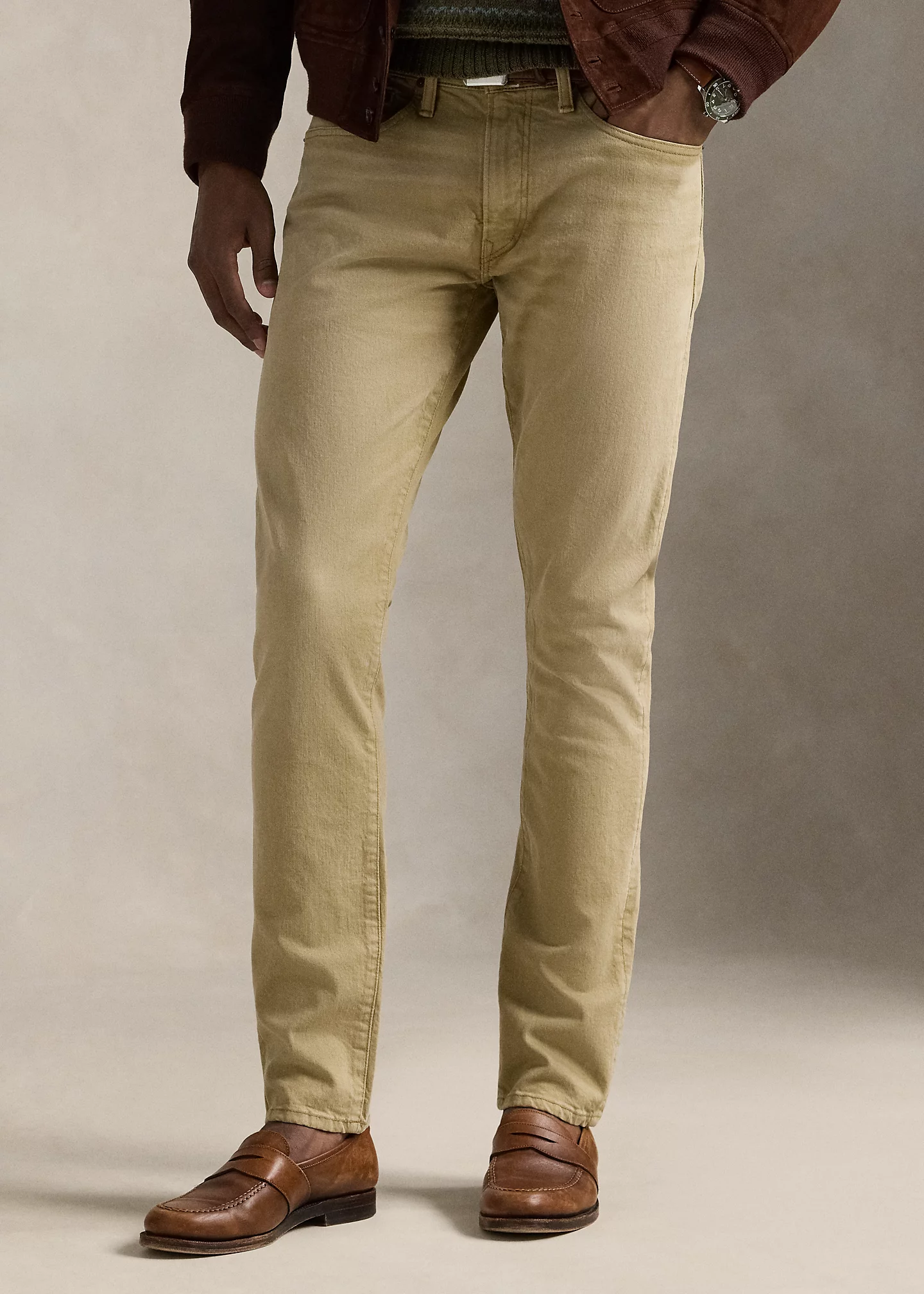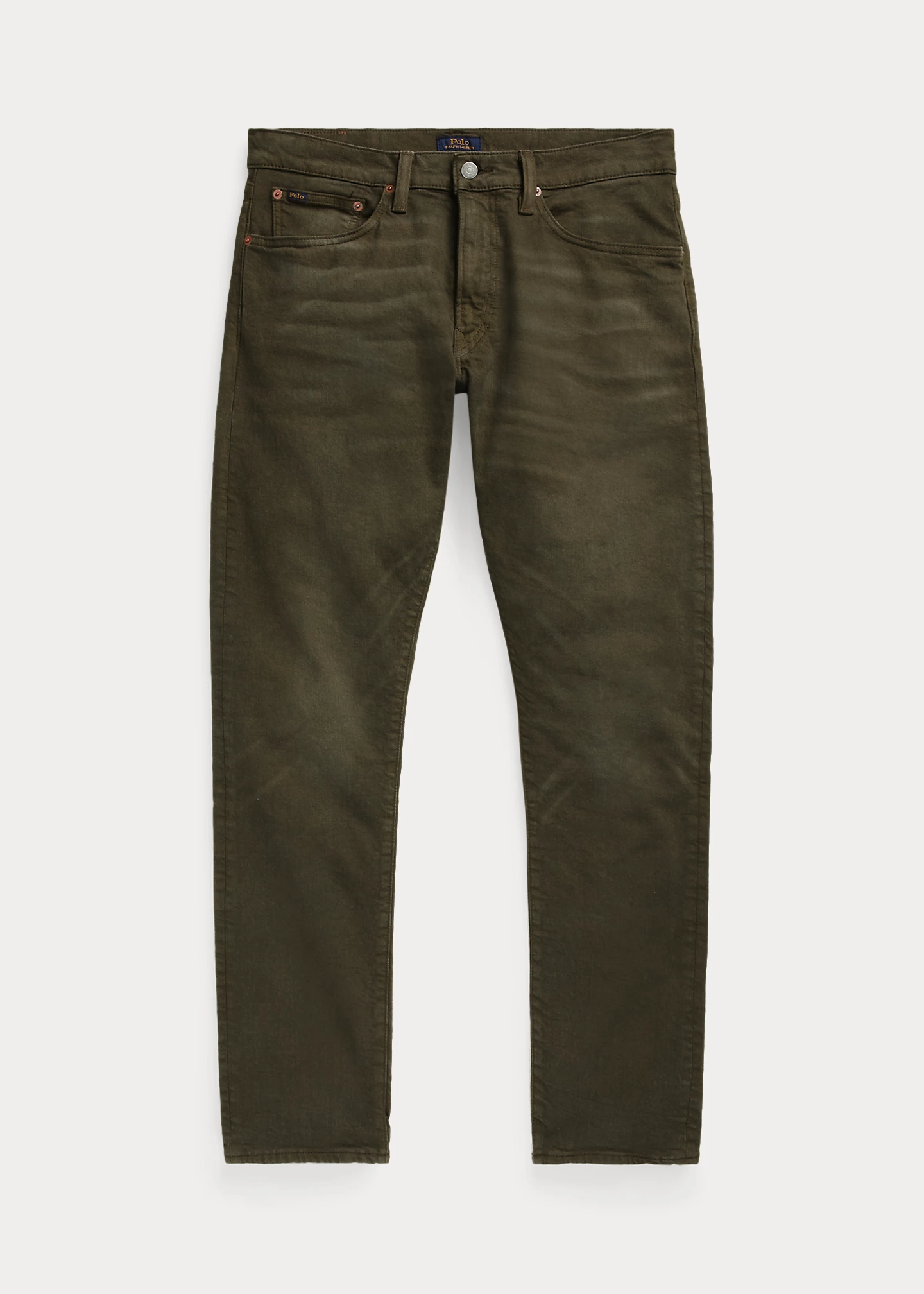 - Five-pocket styling with signature metal rivets. “Polo” label at the coin pocket.