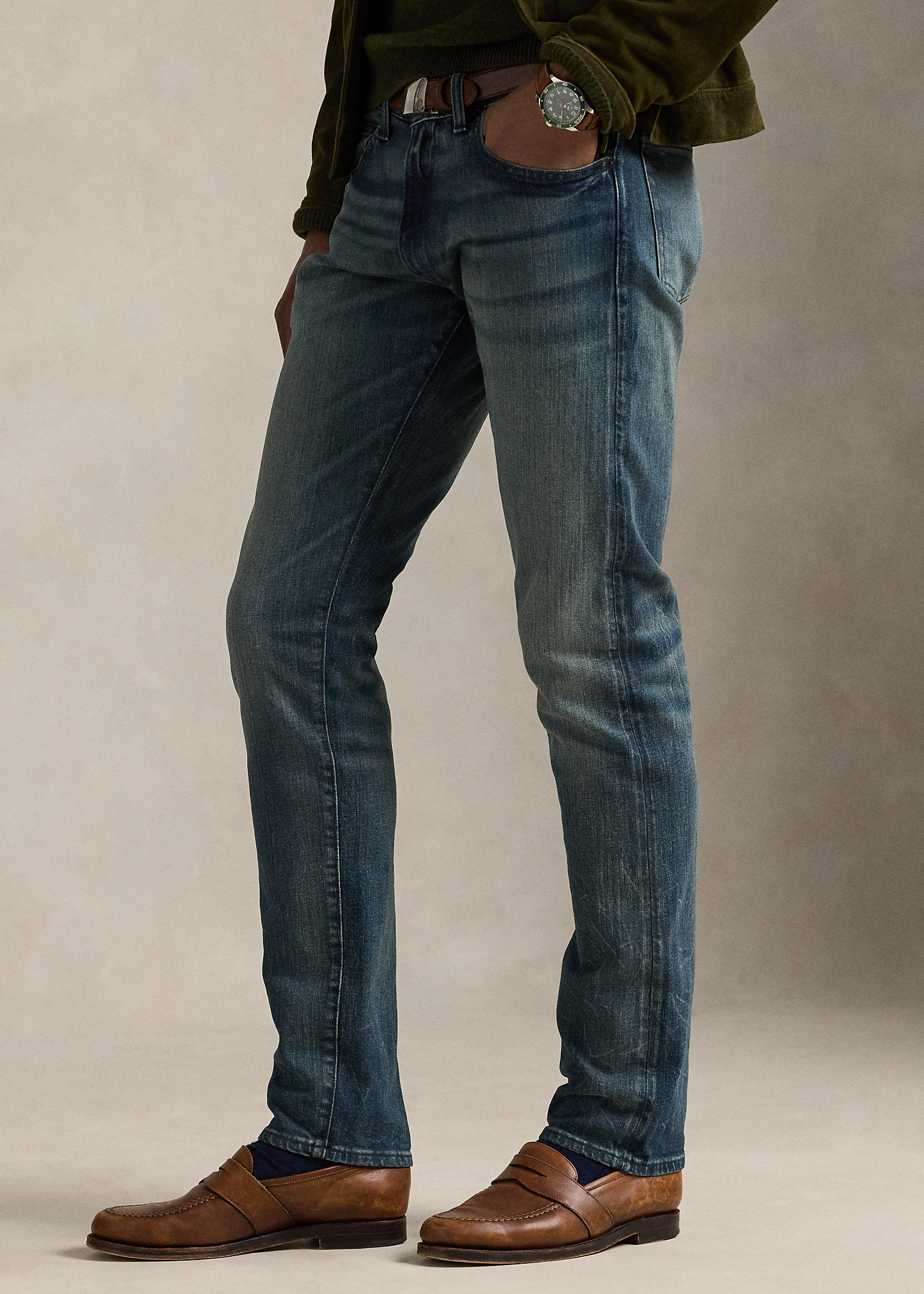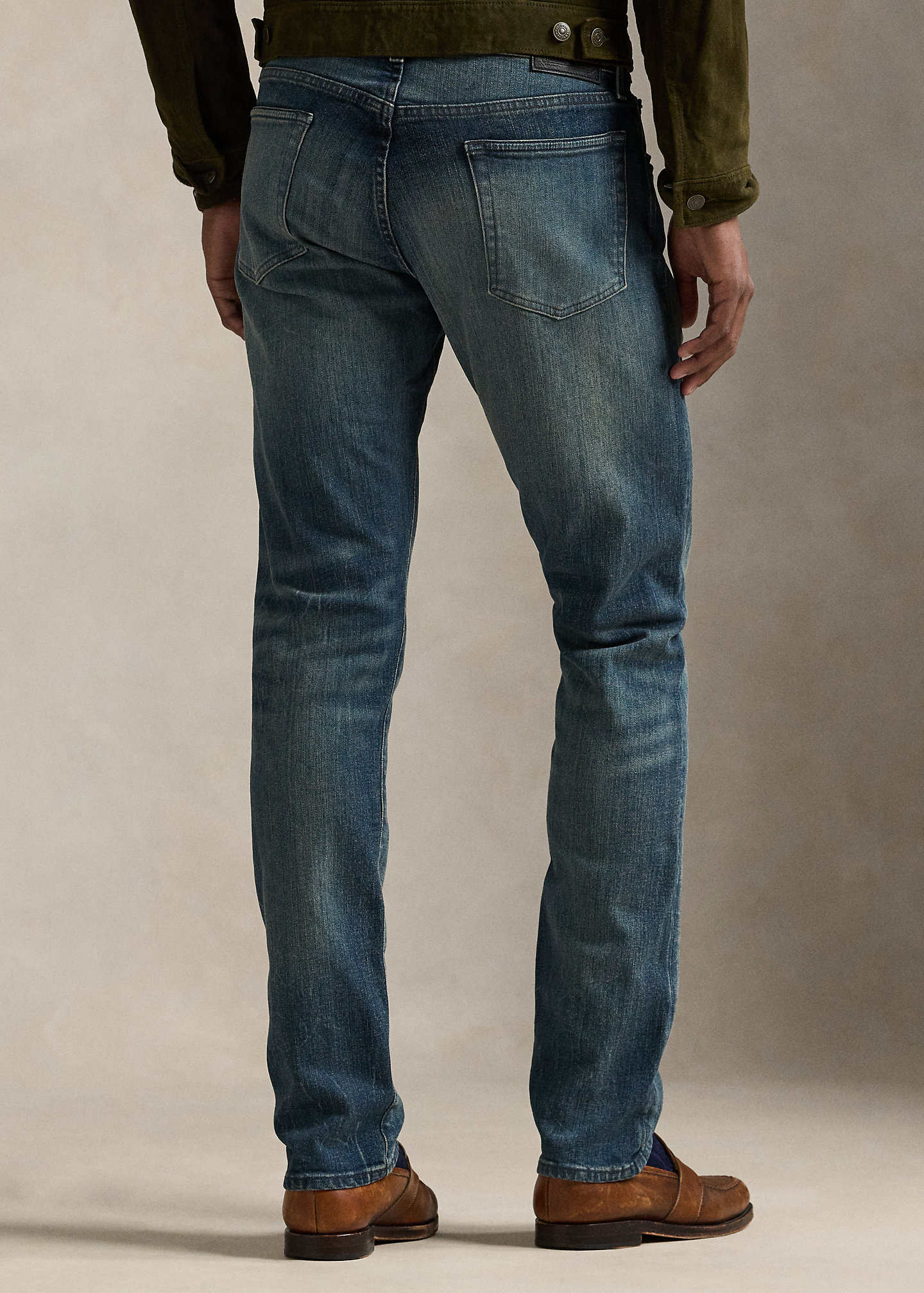 - Five-pocket styling with signature metal rivets. "Polo" label at the coin pocket.
