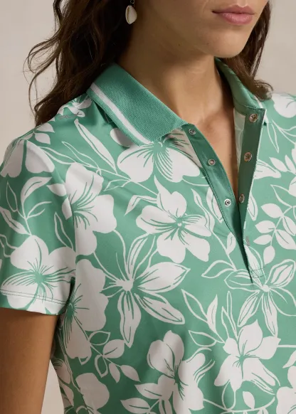 - Ribbed Polo collar with striped tipping. Four-snap placket. Signature "RLX"-engraved metal snaps.