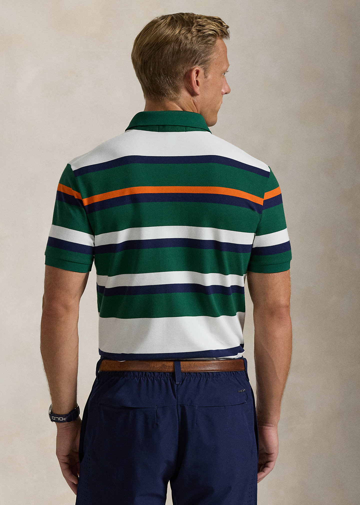 - Short sleeves with ribbed armbands. “RLX” logo printed at the right shoulder.