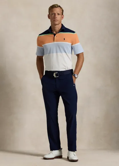 - Two front angled pockets. Concealed zipped pocket at the right side seam. Two back welt pockets. Signature rivet at the front left pocket. “RLX” label at the back right pocket.