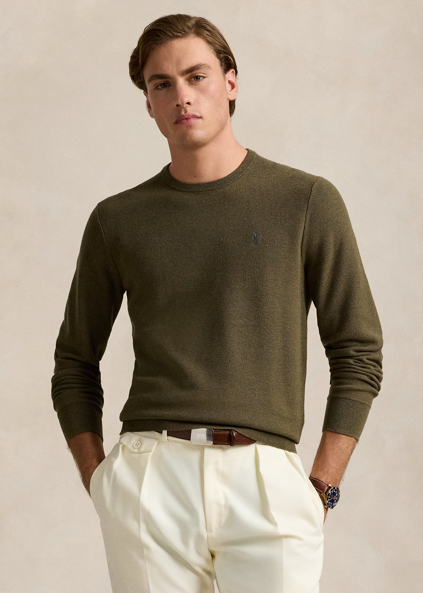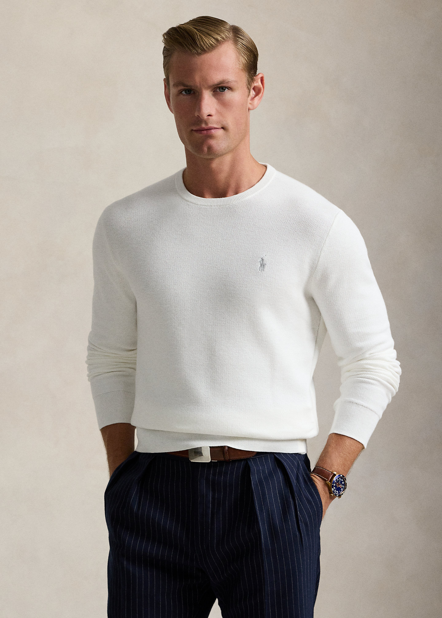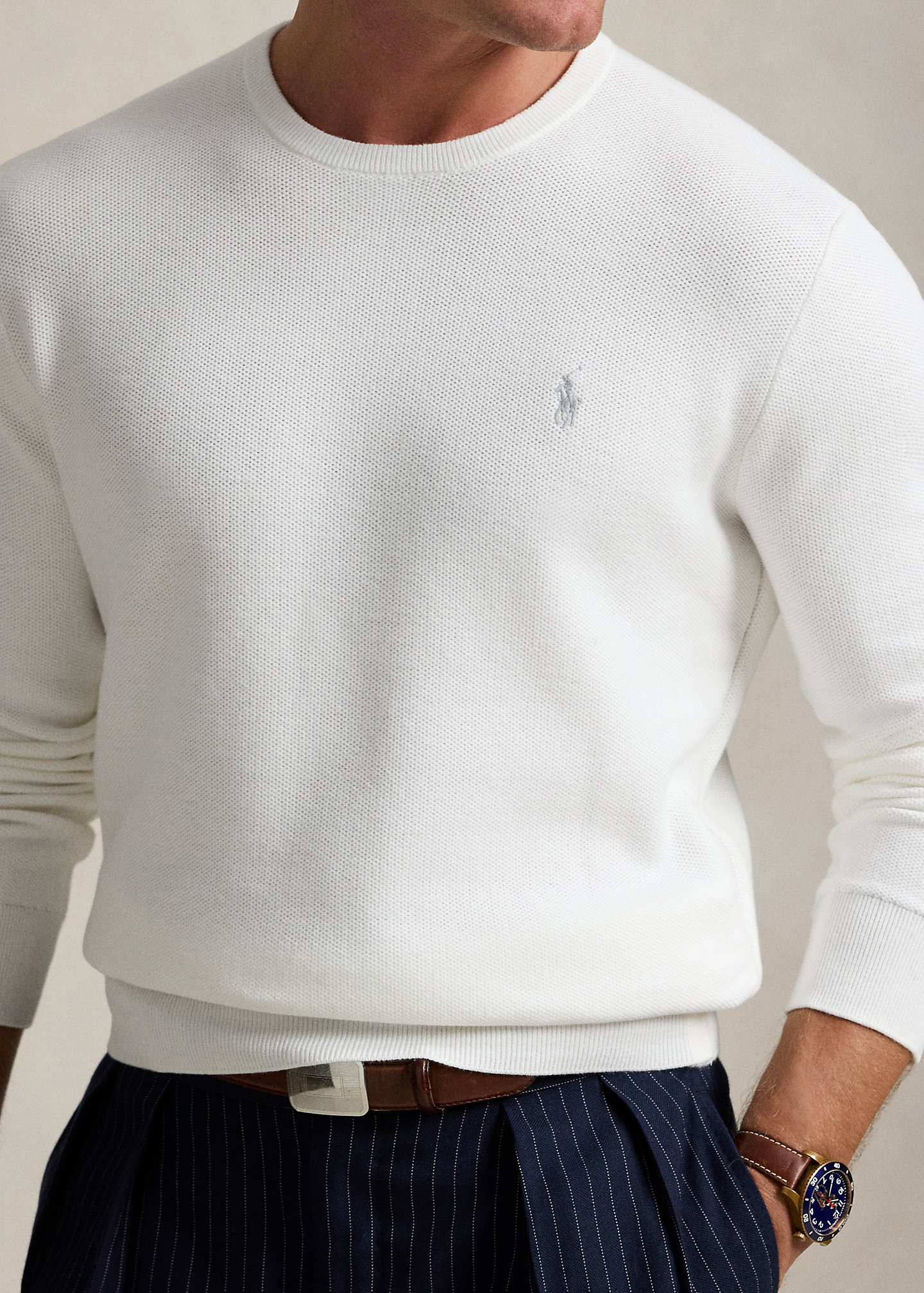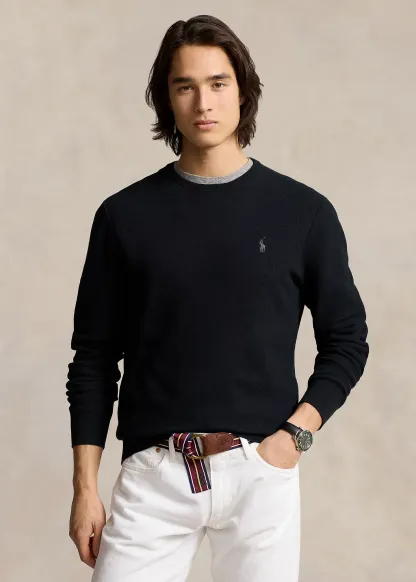 Textured Cotton Crewneck Sweater