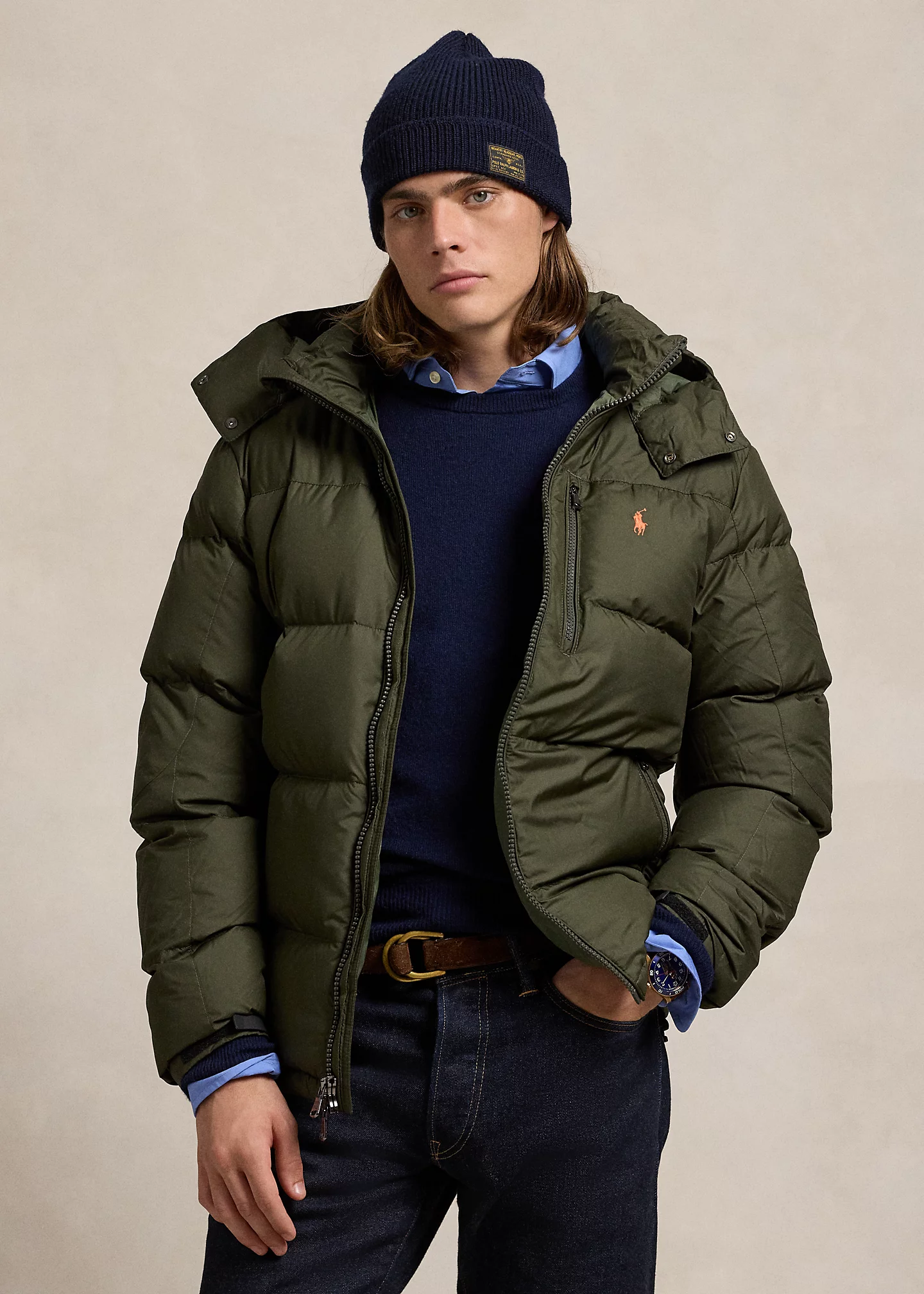- Left chest zipped pocket. Two front waist zipped pockets. Interior right chest pocket. Drawstring hem. Fully lined and filled.