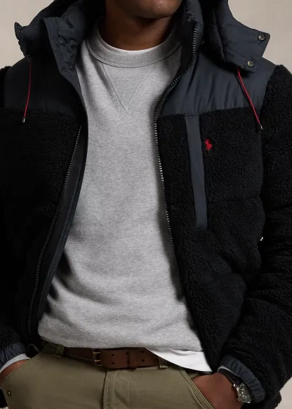 - Mockneck. Zip-off drawstring hood. Two-way full-zip front with a flap at the top that prevents chafing.