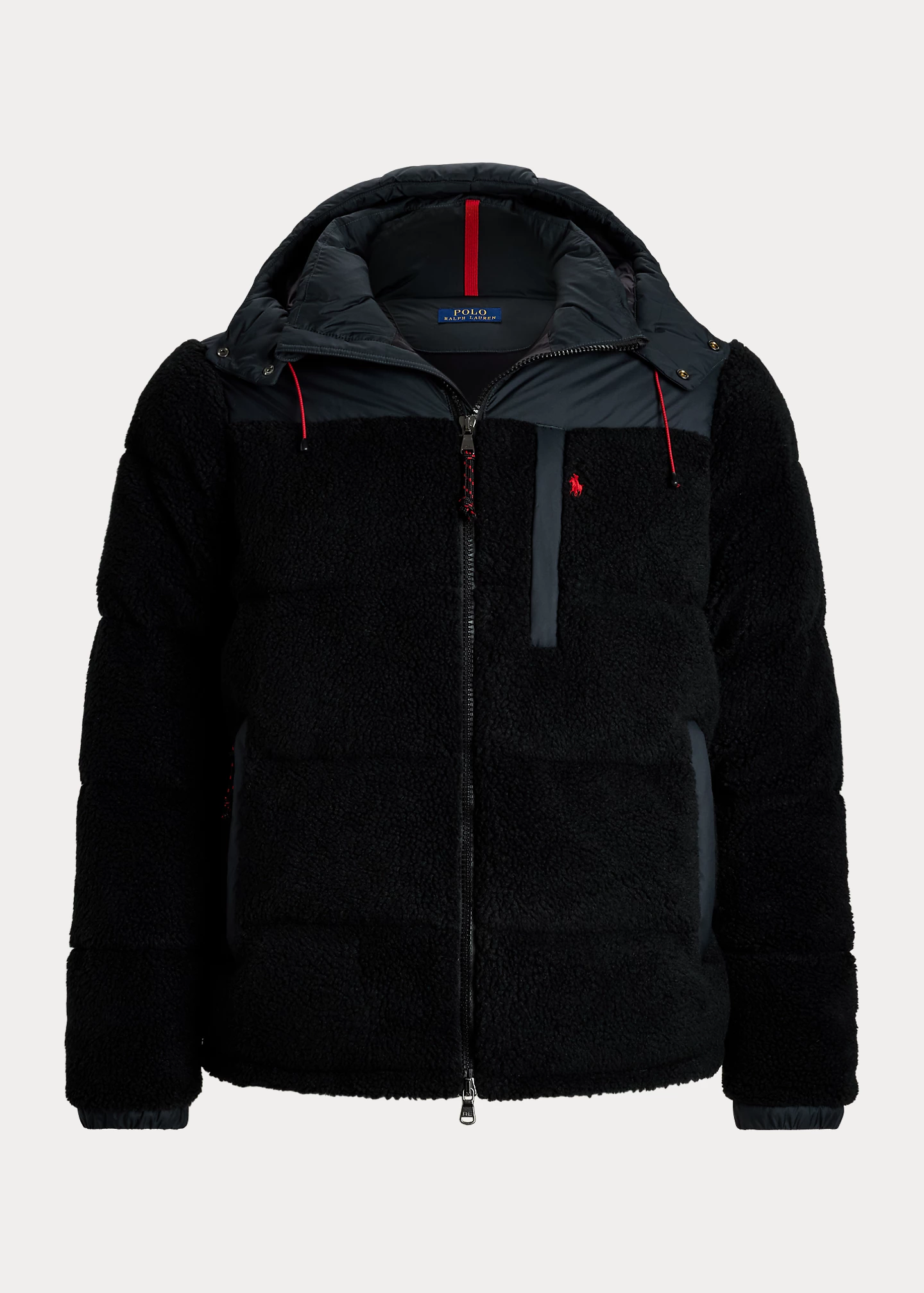 - Shell: 70% polyester, 30% acrylic. Woven trim and hood: 100% polyester. Lining: 100% nylon. Fill: 75% duck down, 25% duck feathers. Machine washable. Imported.