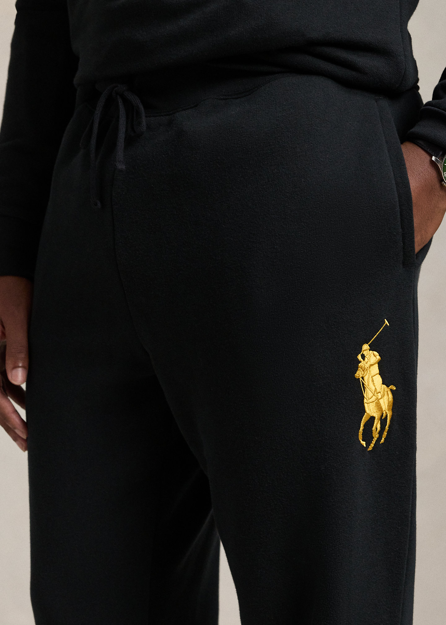 - Signature embroidered Big Pony at the left thigh.