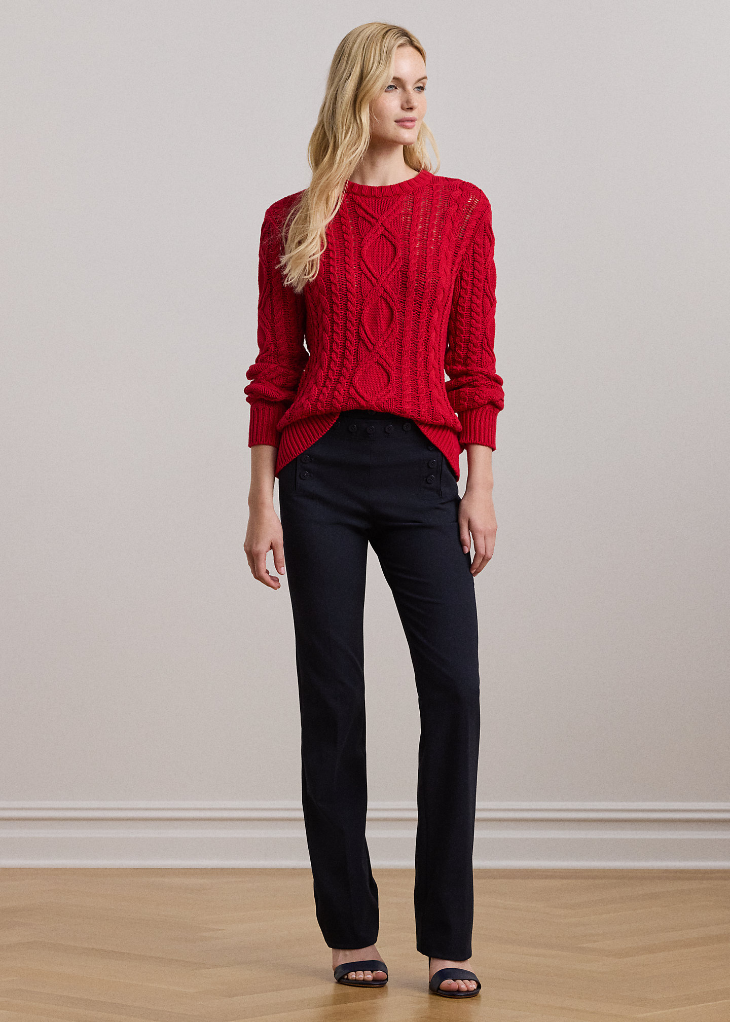- High rise. Straight-leg silhouette. Intended to hit below the ankle.
