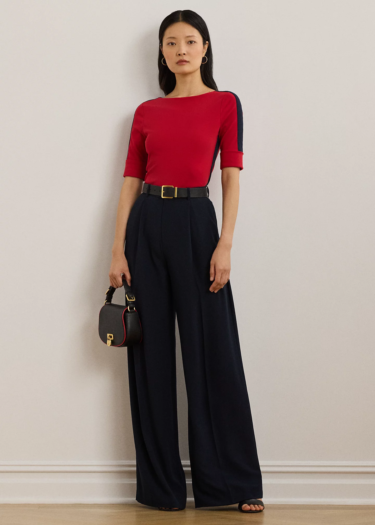 - Elbow-length sleeves with folded cuffs. “LRL”-embroidered logo at the front right hem.