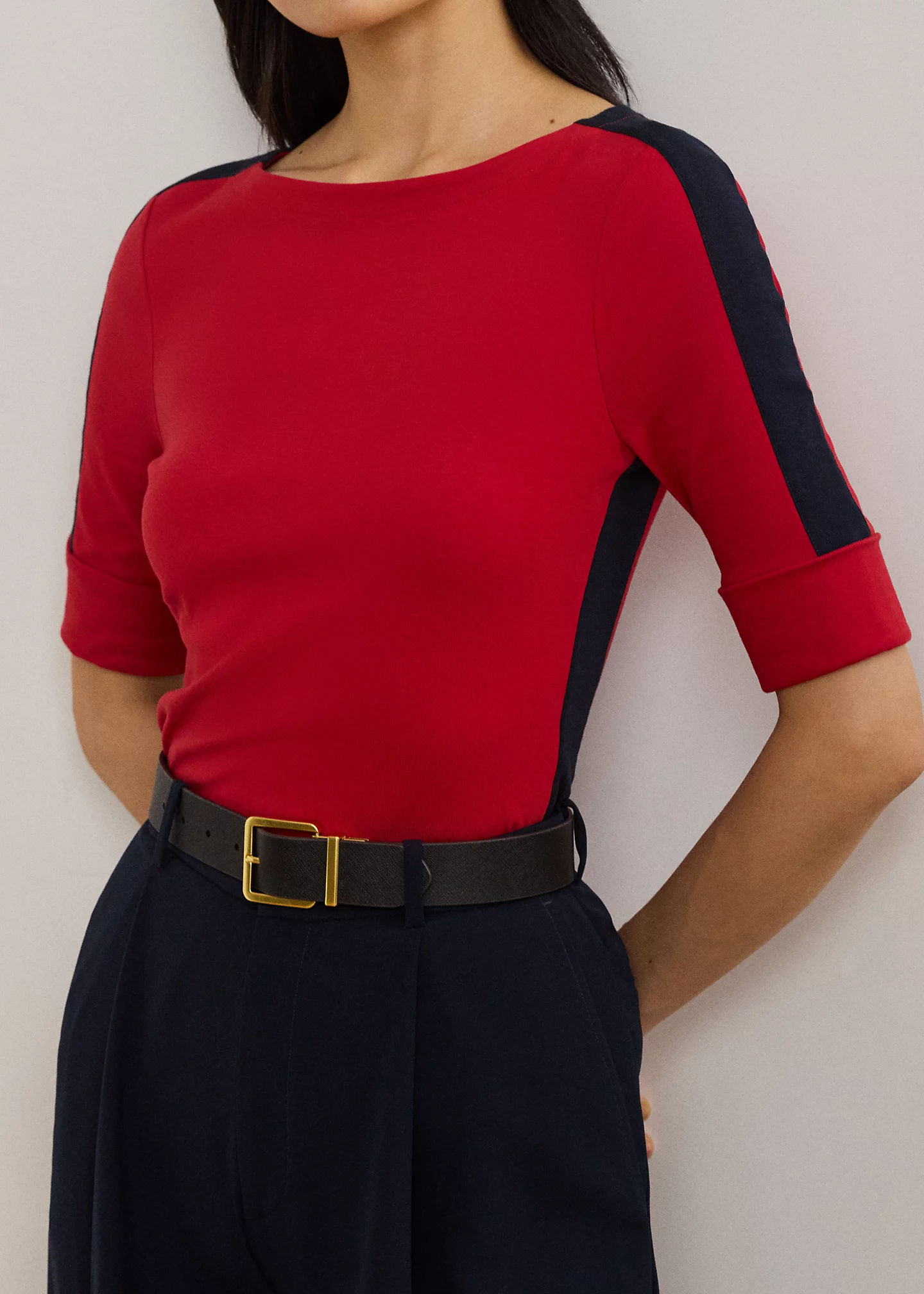 Two-Tone Stretch Cotton Elbow-Sleeve Tee