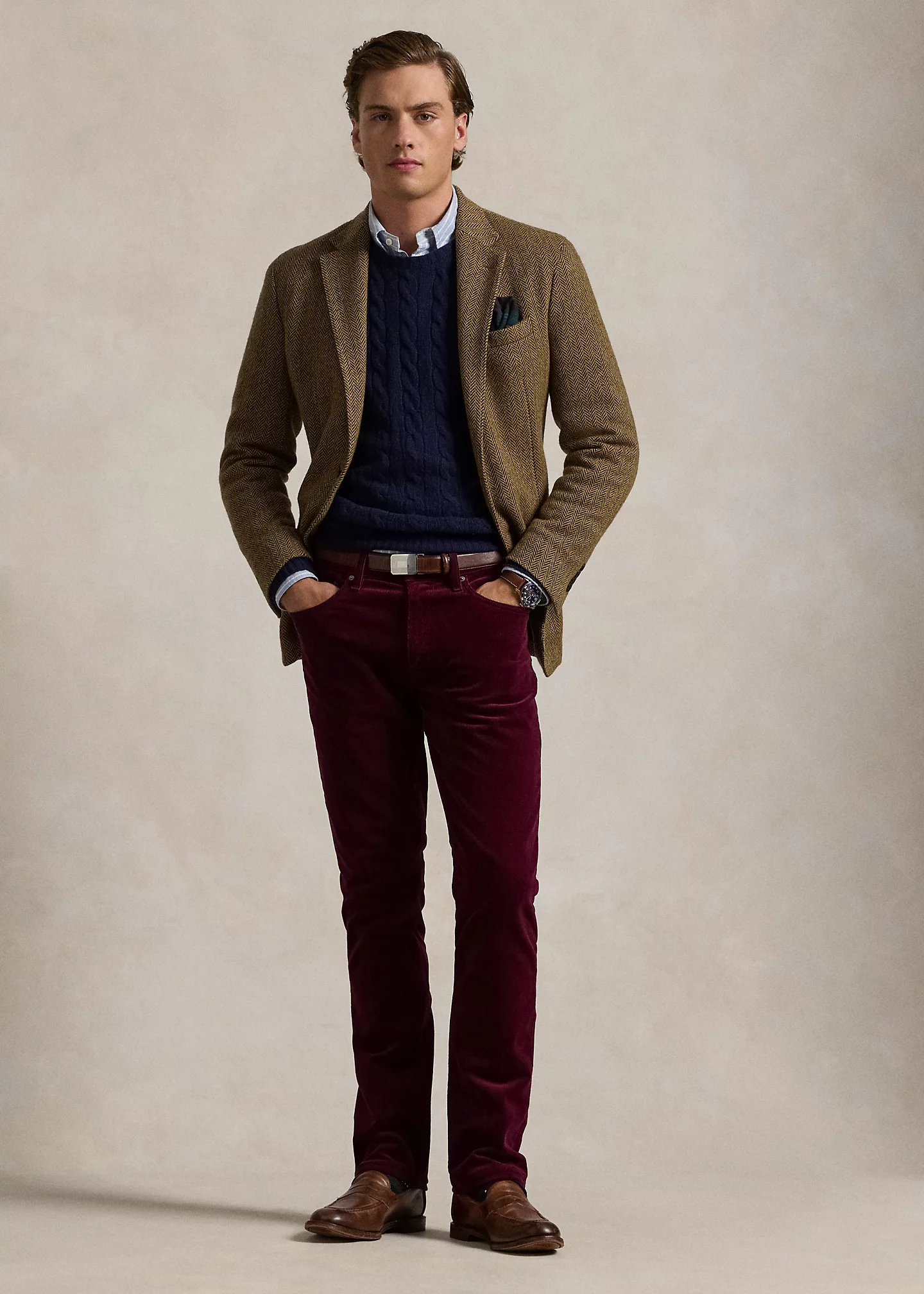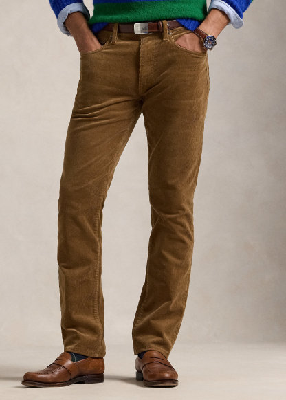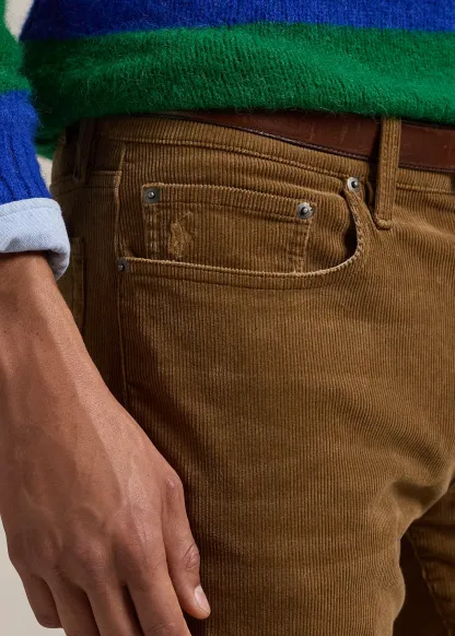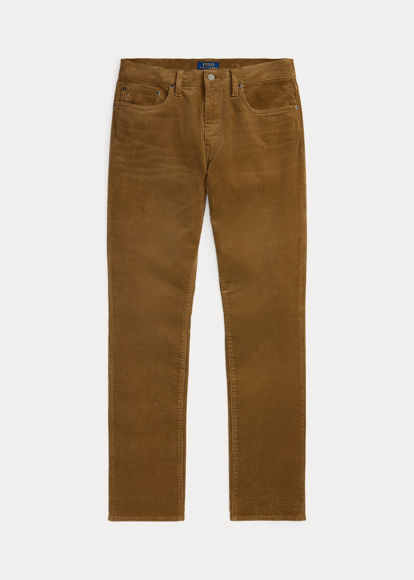 - Belt loops. Zip fly with a signature buttoned closure. Five-pocket styling with signature metal rivets. Leather “Polo Ralph Lauren” patch at the back right waist.