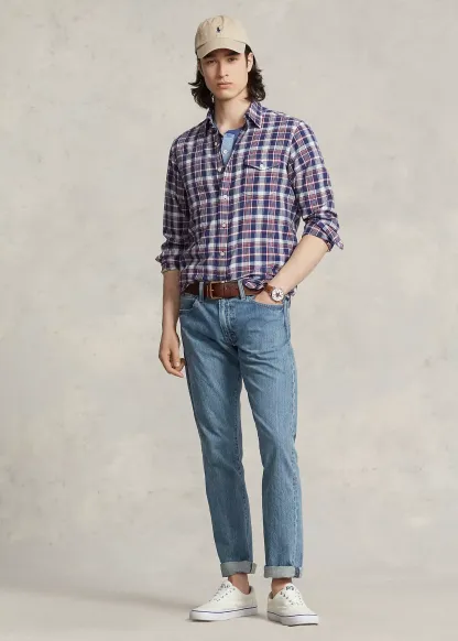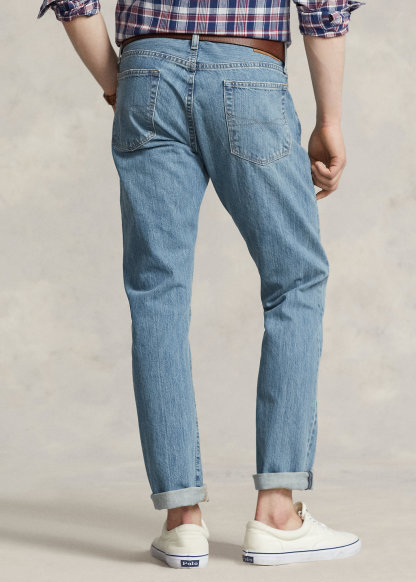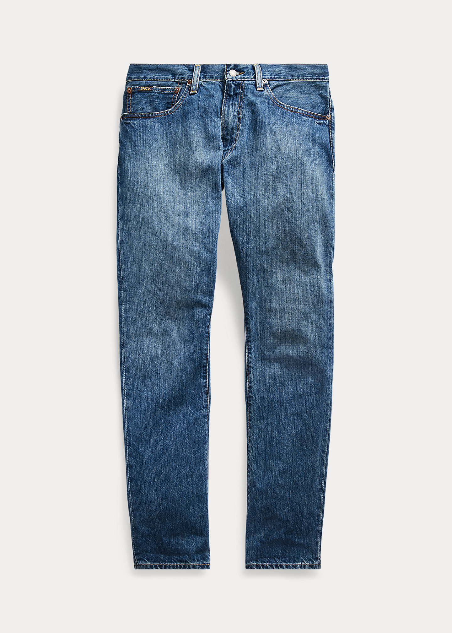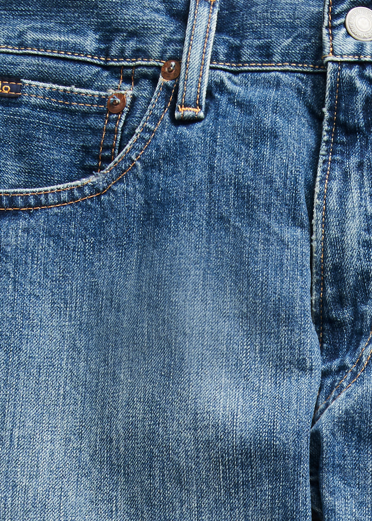 - Five-pocket styling with signature metal rivets. “Polo” label at the coin pocket.