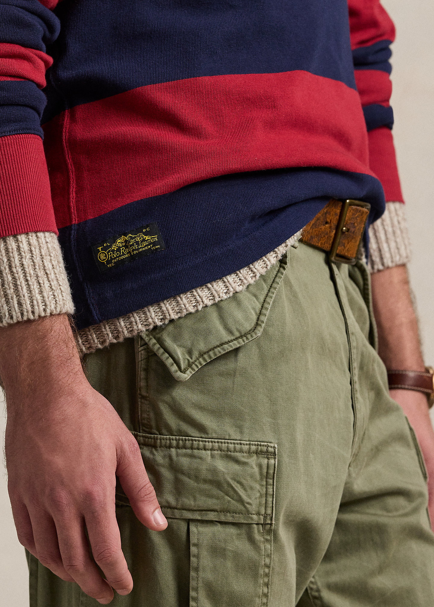 - Long sleeves with ribbed cuffs. "Mountain Div. Polo Ralph Lauren" patch at the left chest.