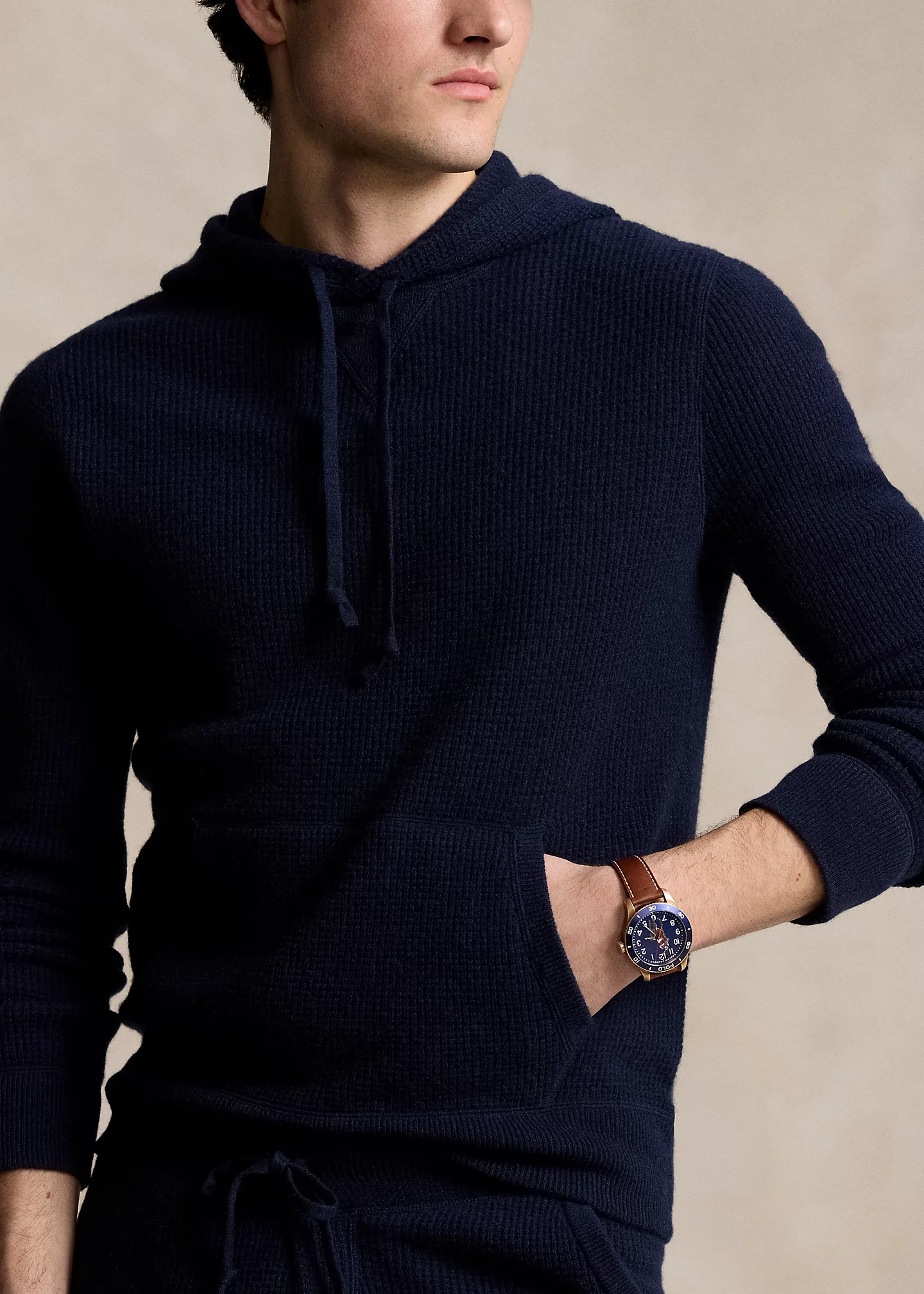 - Kangaroo pocket with rib-knit trim. Rib-knit hem.