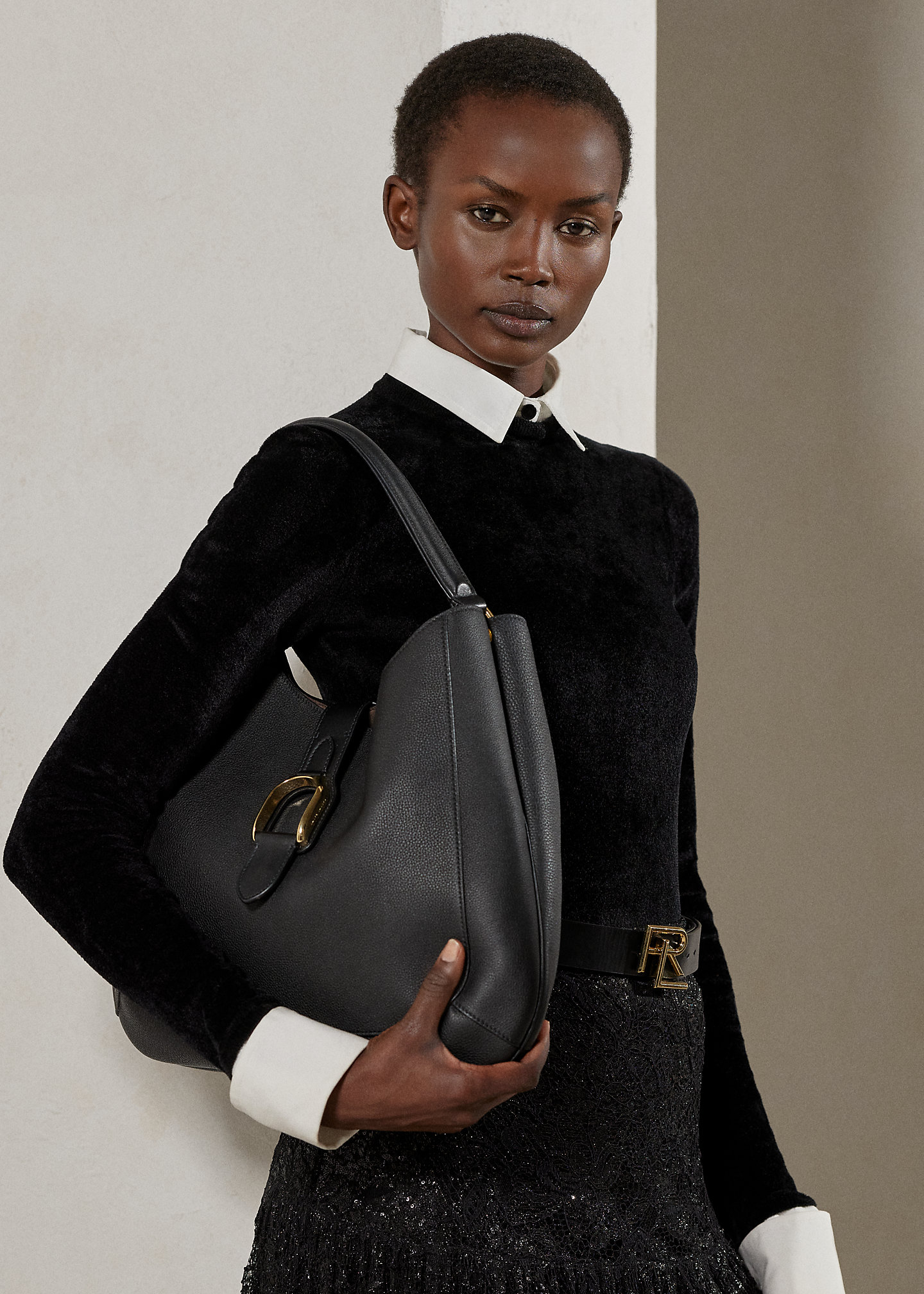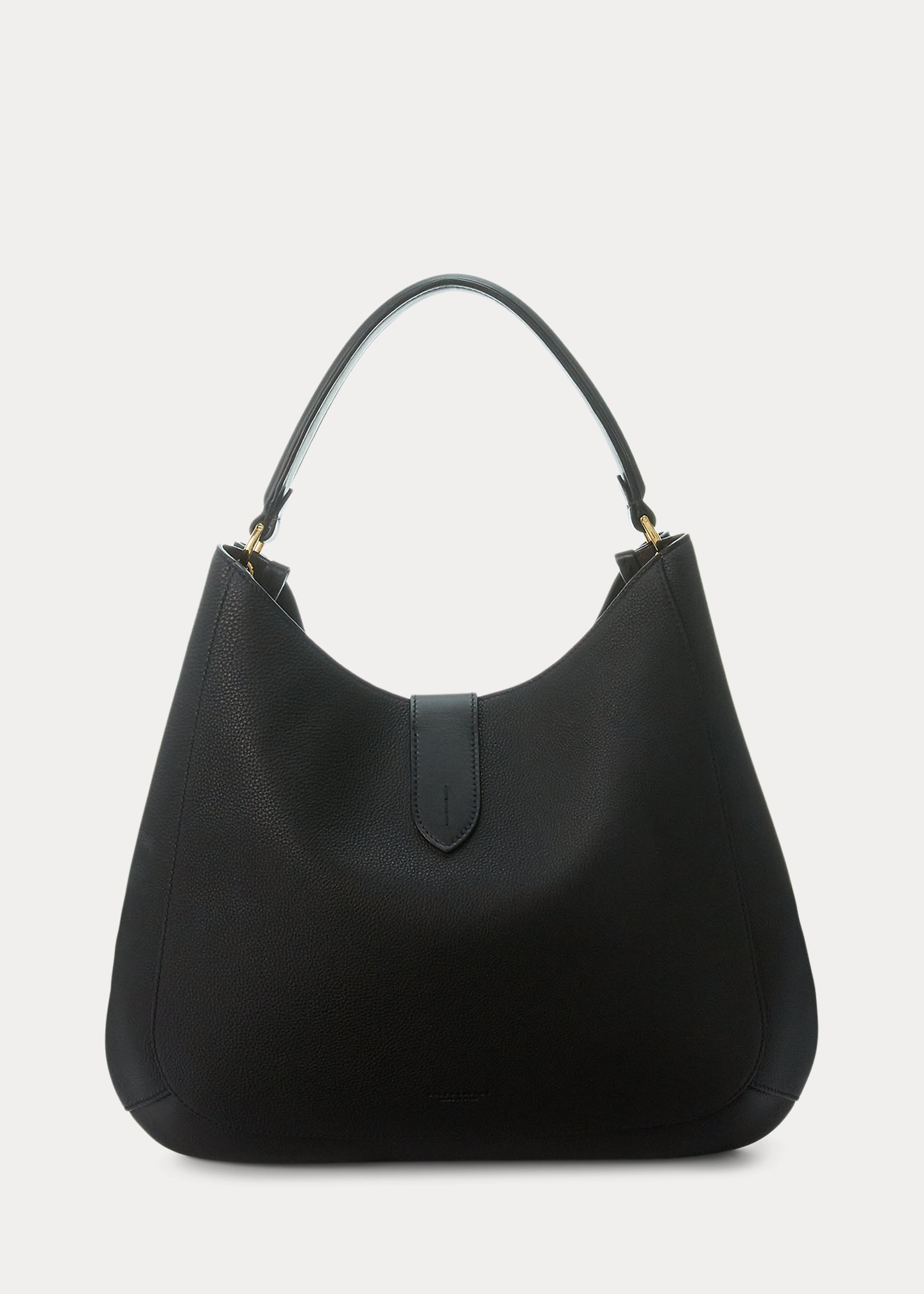 - Polished stirrup buckle at the fold-over strap. Stirrup buckle engraved with “Ralph Lauren” at both sides.