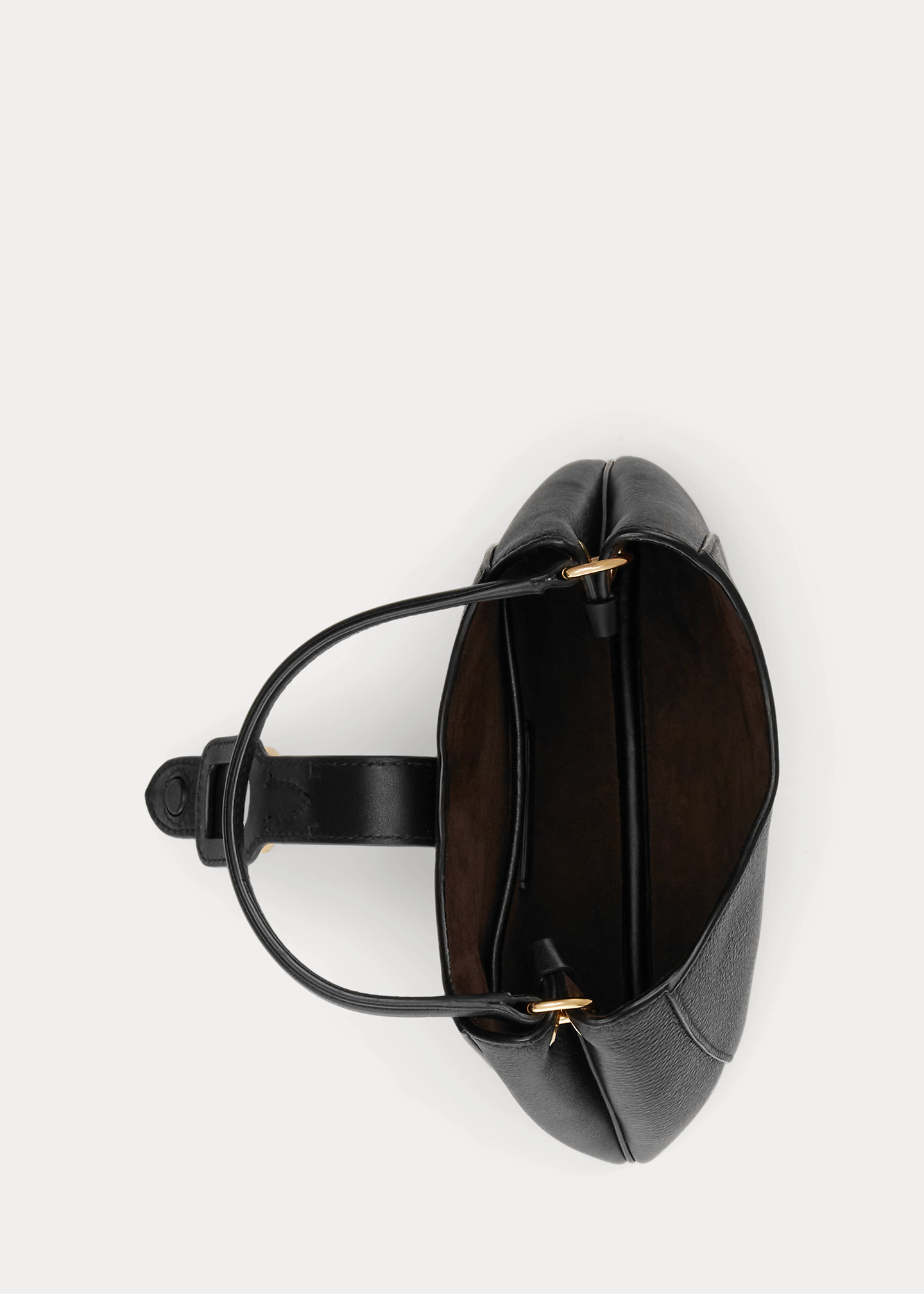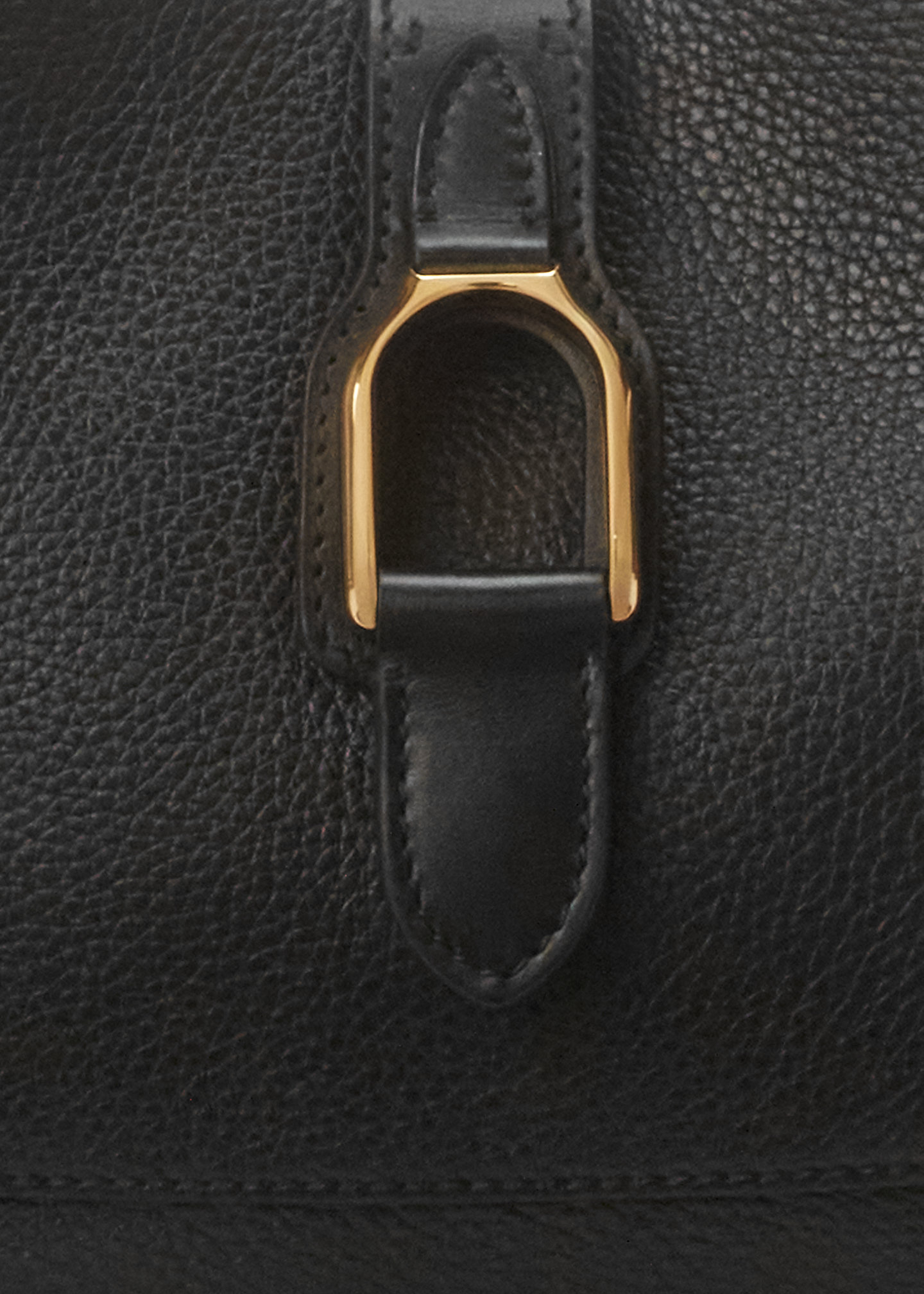 - Polished stirrup buckle at the fold-over strap. Stirrup buckle engraved with “Ralph Lauren” at both sides.