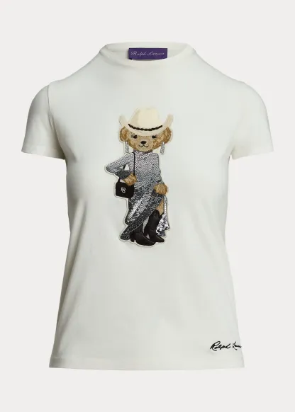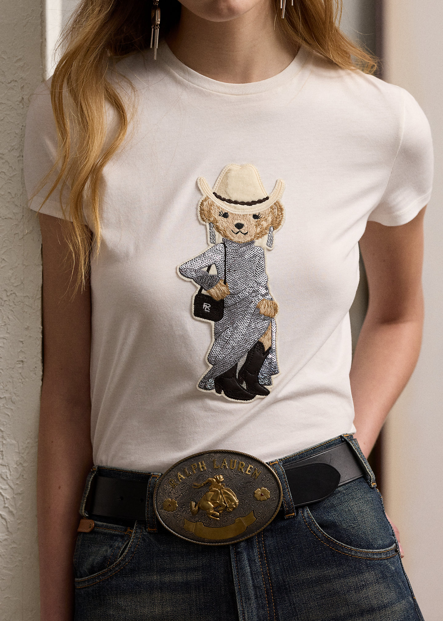 - Polo Bear patch at the center front. Script “Ralph Lauren” embroidery at the left hem.