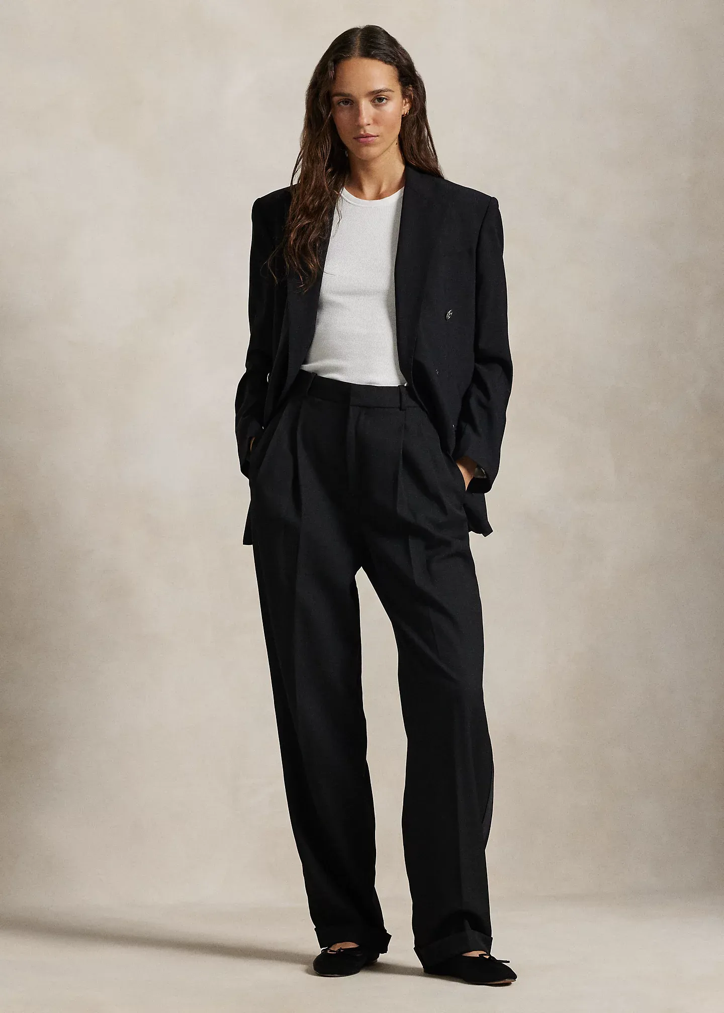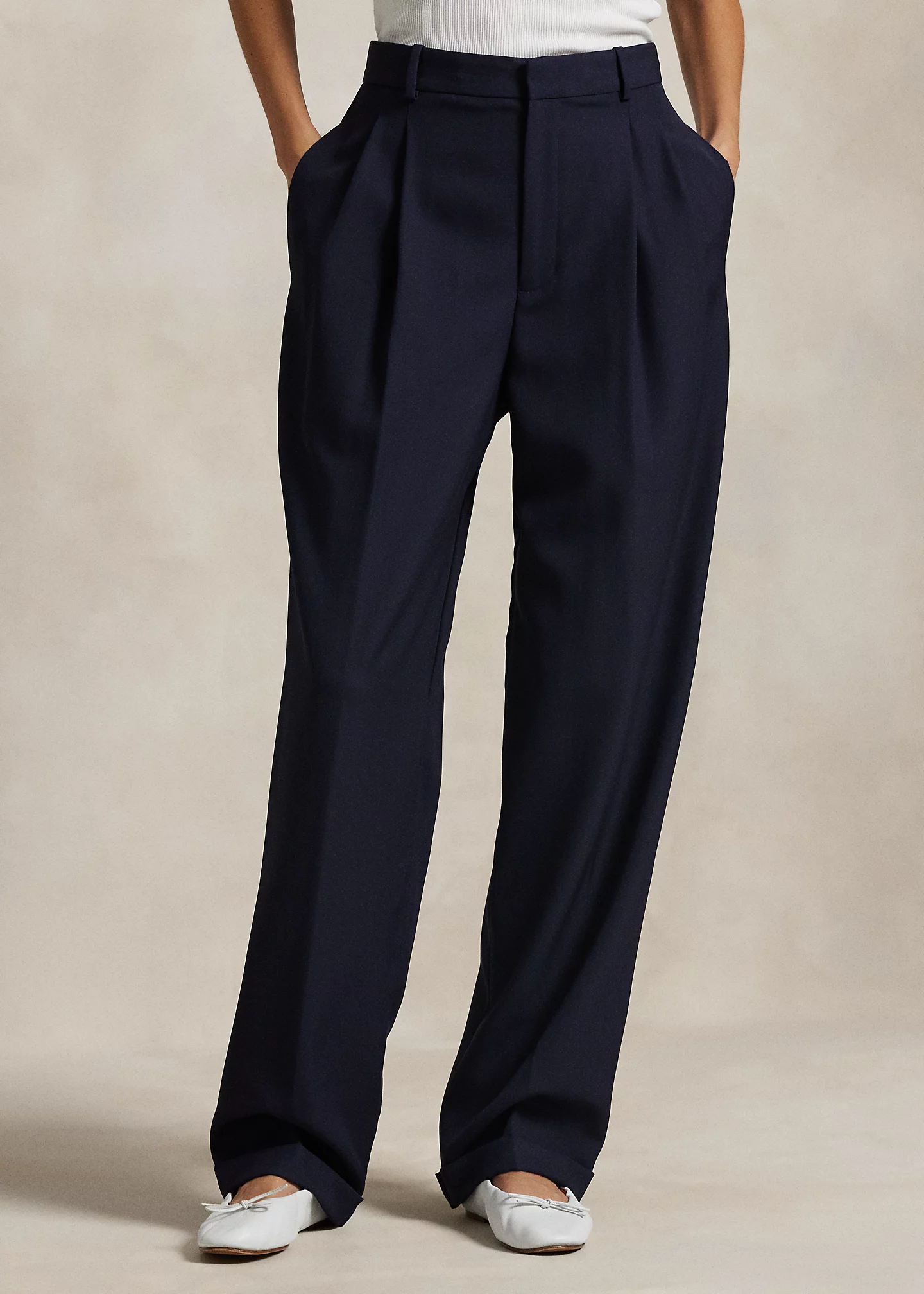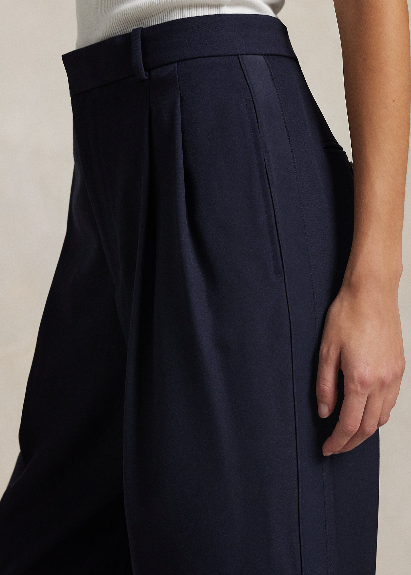 - High rise. Wide-leg silhouette. Intended to hit below the ankle.